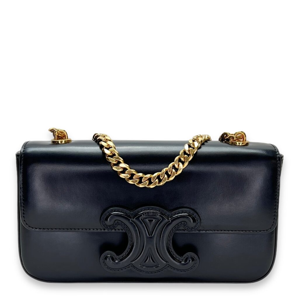 Triomphe Shoulder Bag Black in Calfskin, Lacquered Metal hardware