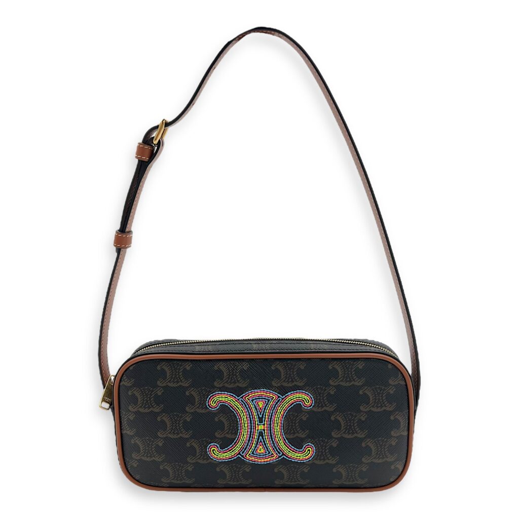 Triomphe Shoulder Bag Brown in Coated Canvas, Gold hardware