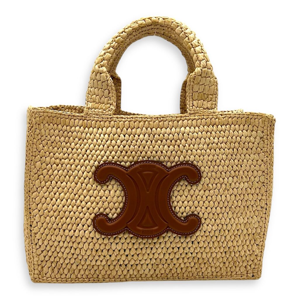 Triomphe Tote Bag Brown in Raffia, Gold hardware