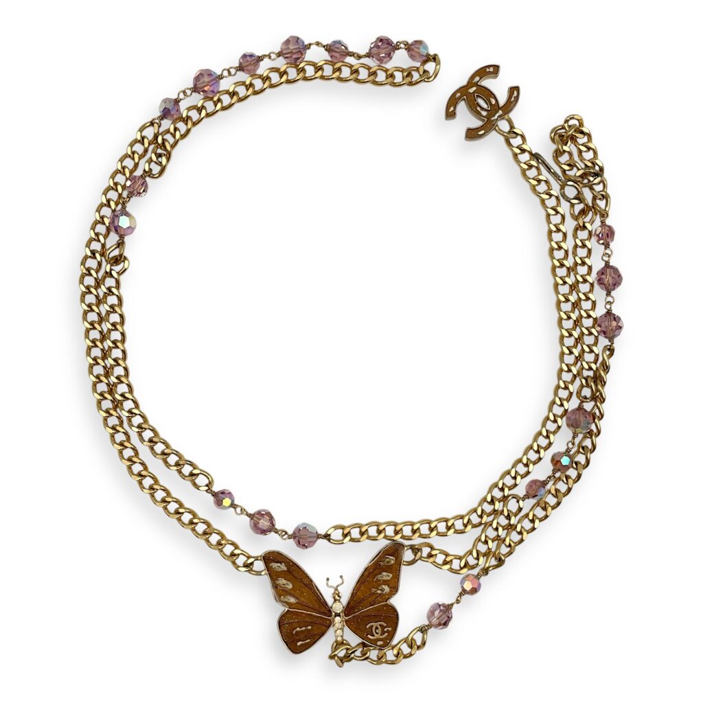 07P Mauve Butterfly Brown Chain Belt in Resins, Beads, Gold hardware