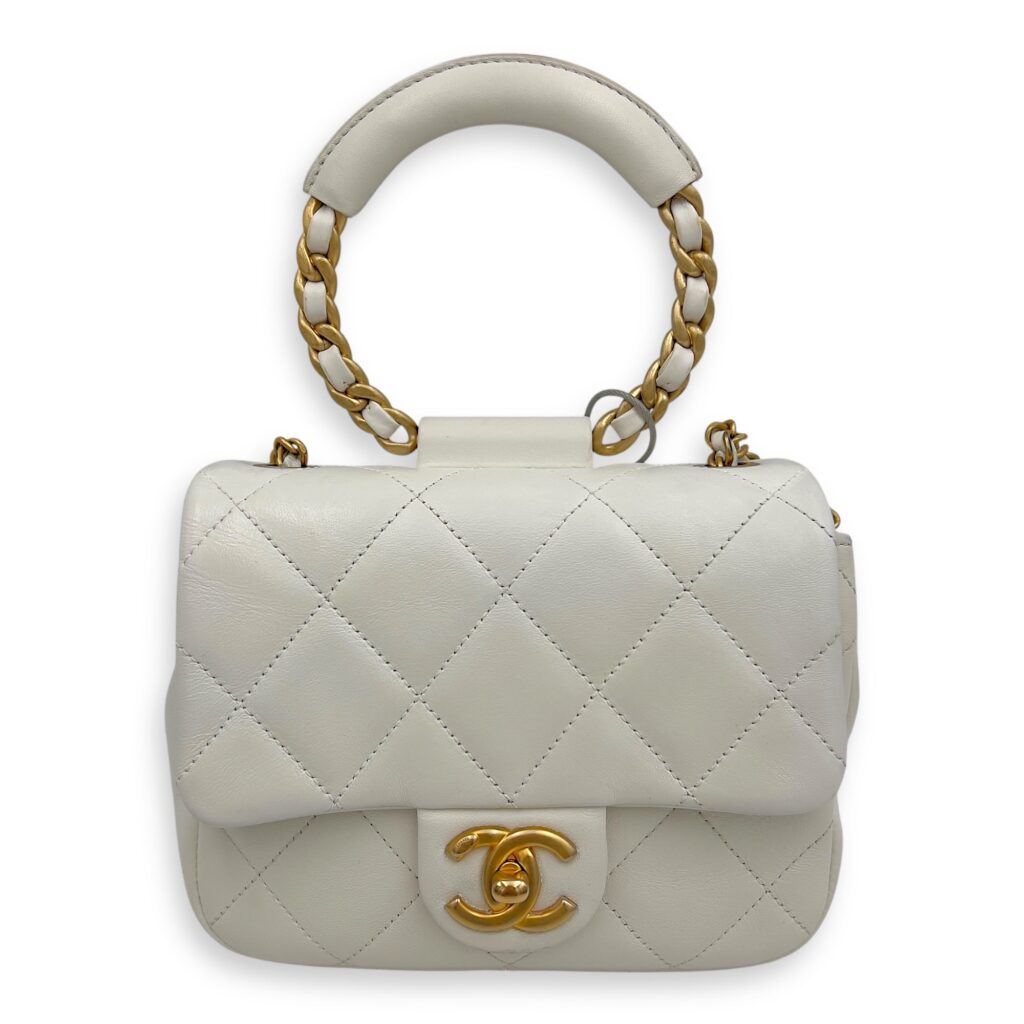 20C In The Loop CC Flap White Top Handle Bag in Lambskin, Gold hardware