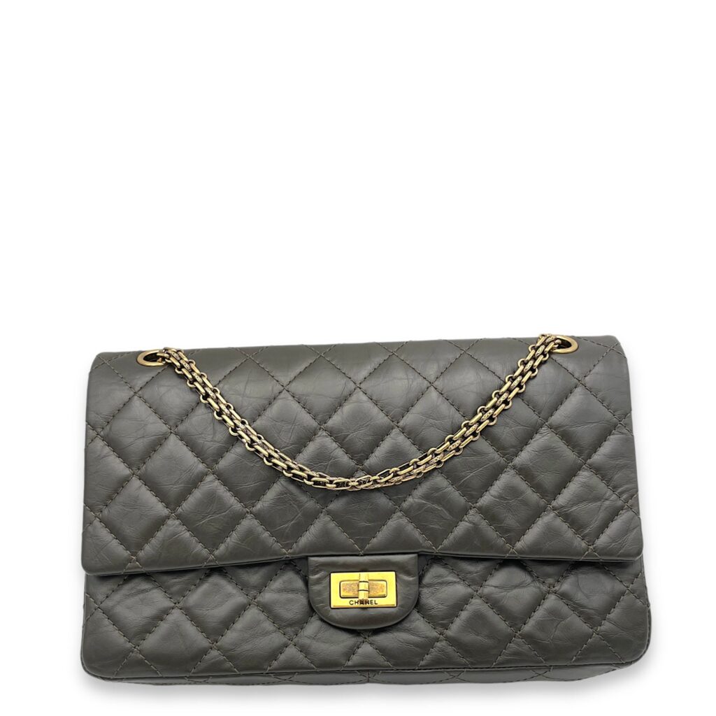 2.55 Brown Shoulder Bag in Calfskin, Gold hardware