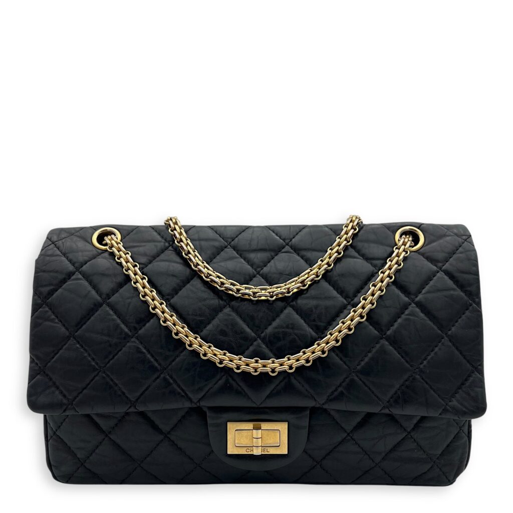 2.55 Shoulder Bag 27 Black in Calfskin, Gold hardware