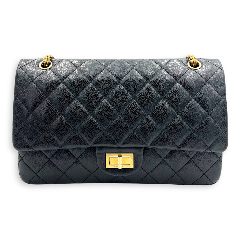 2.55 Shoulder Bag Black in Caviar Leather, Gold hardware