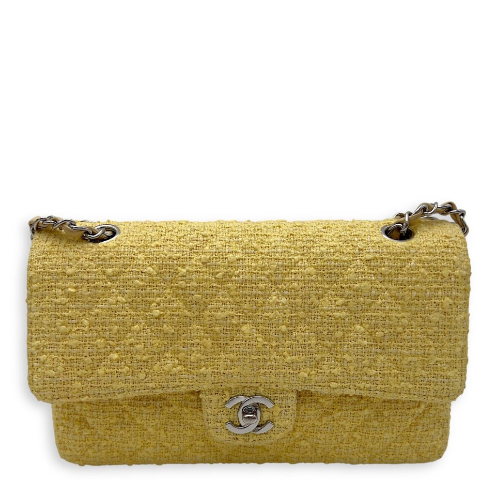 Classic Shoulder Bag Yellow in Tweed, Silver hardware