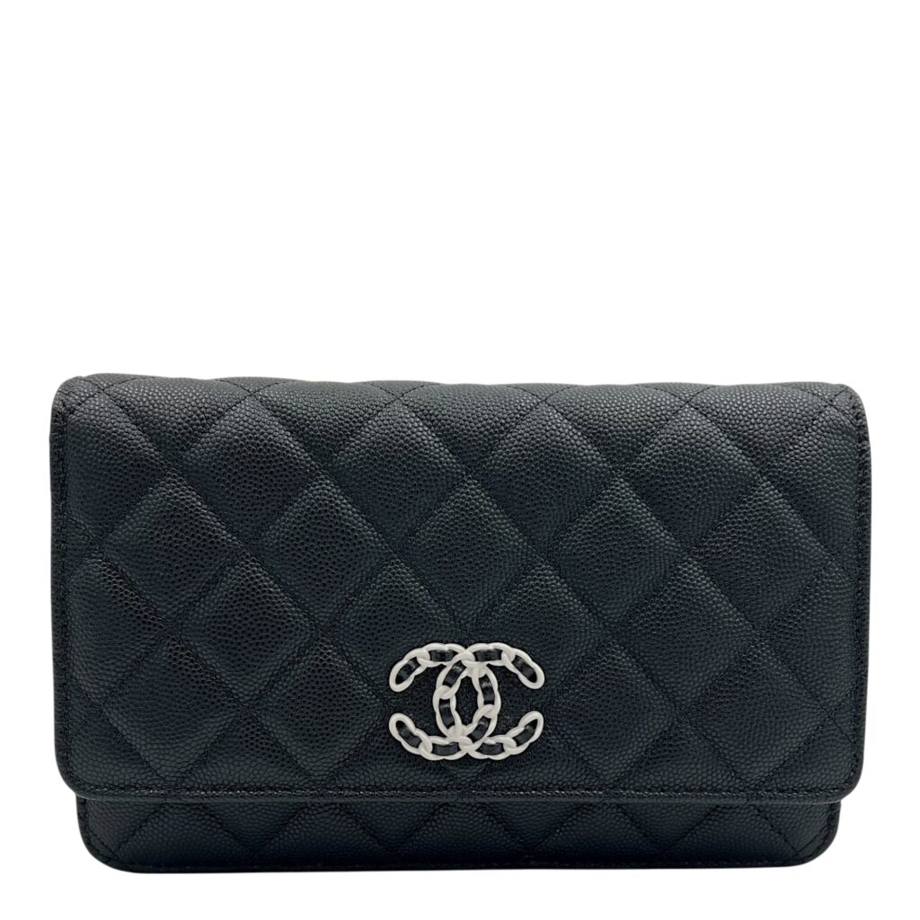 Classic Wallet On Chain Black in Caviar Leather, Silver hardware