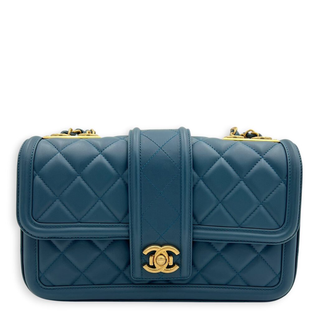 Quilted Green Shoulder Bag in Calfskin, Gold hardware