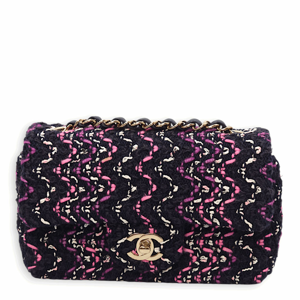 Rectangle Mini Purple, Pink, White Crossbody Bag in Tweed, Gold hardware