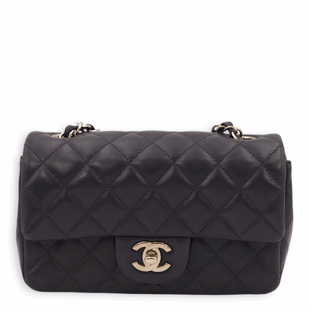 Rectangle Mini Navy Blue Crossbody Bag in Lambskin, Palladium hardware