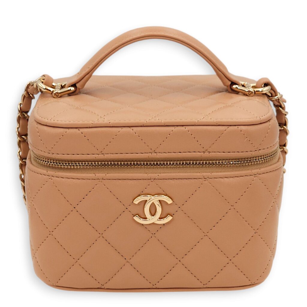 Quilted Vanity Beige Top Handle Bag in Lambskin, Gold hardware