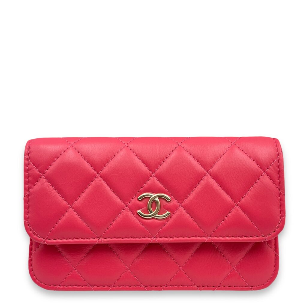 Quilted Zip Pink Card Holder in Caviar Leather, Gold hardware