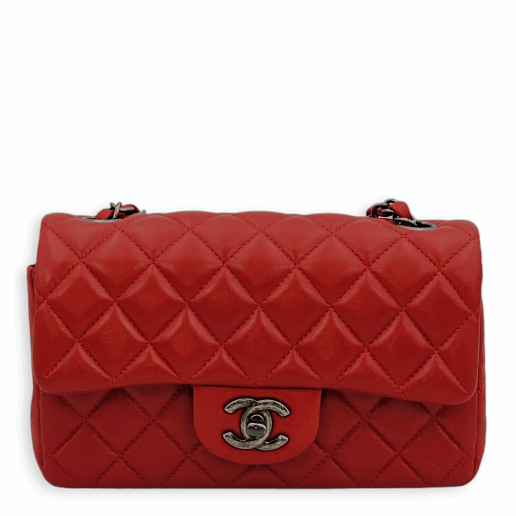 Rectangle Mini Red Crossbody Bag in Lambskin, Ruthenium hardware