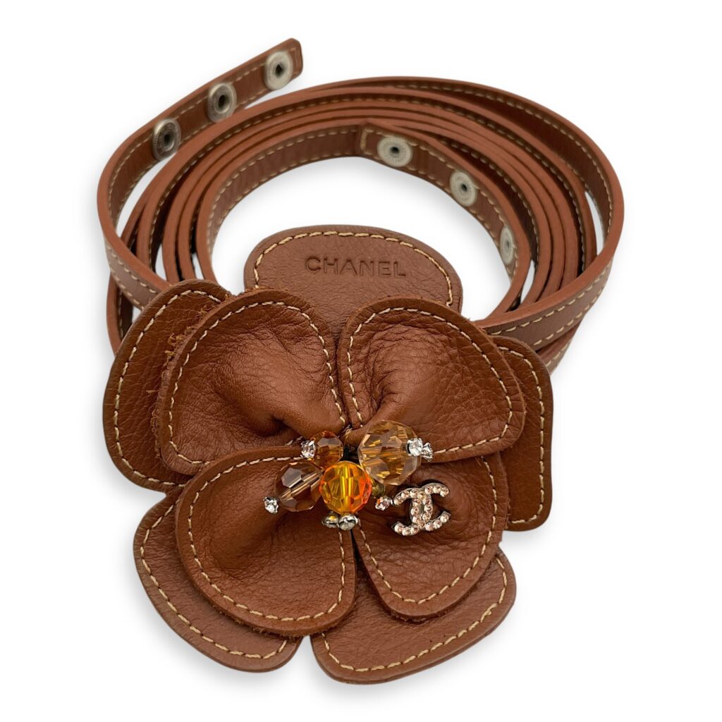 Camellia Double Tour Brown Belt in Calf, Crystals, Beads, Silver hardware