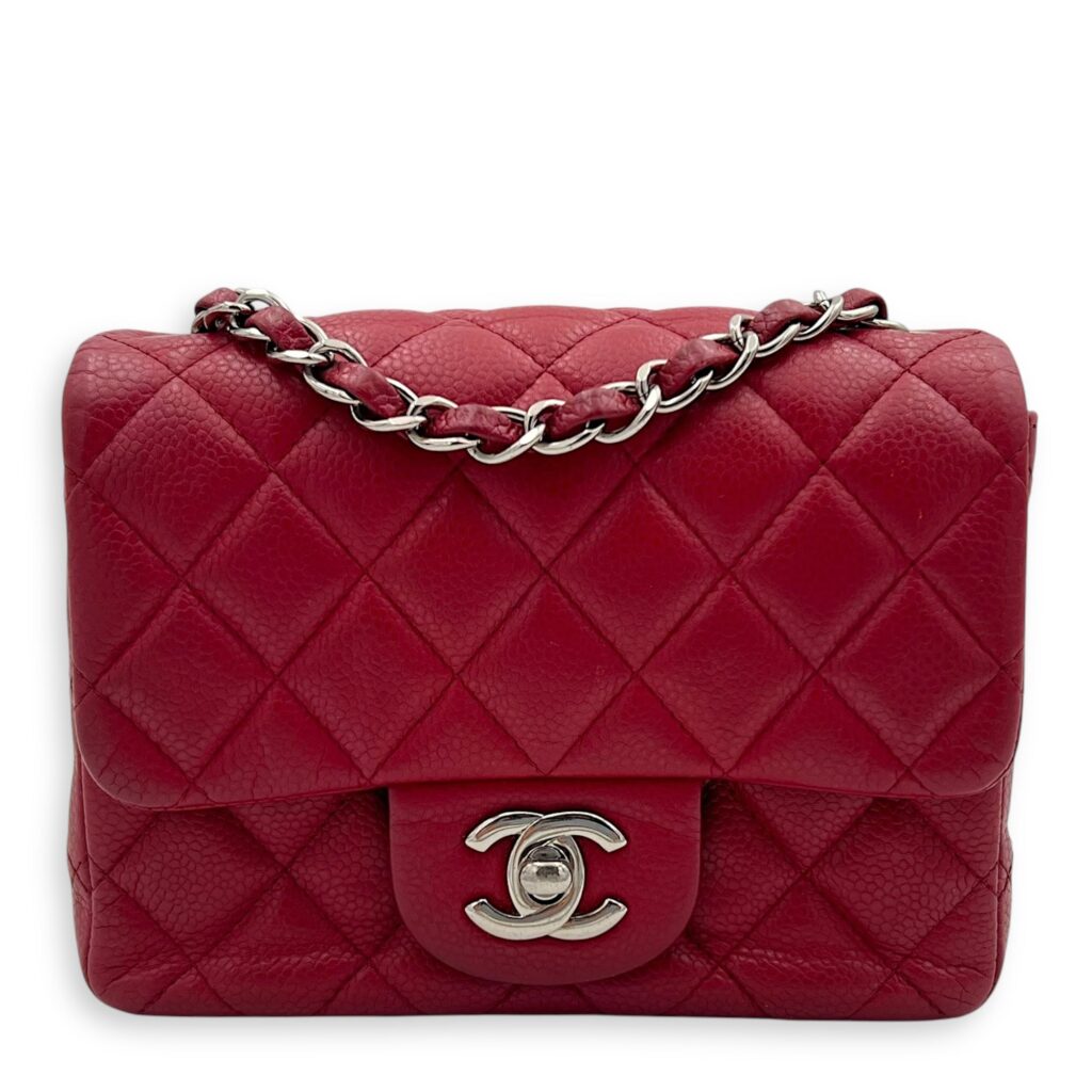CC Mini Square Shoulder Bag Red in Caviar Leather, Silver hardware