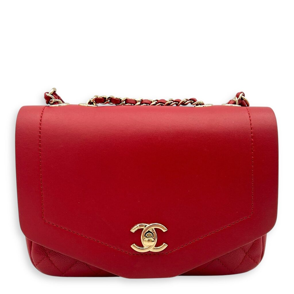 CC Flap Shoulder Bag Red in Calfskin, Gold hardware