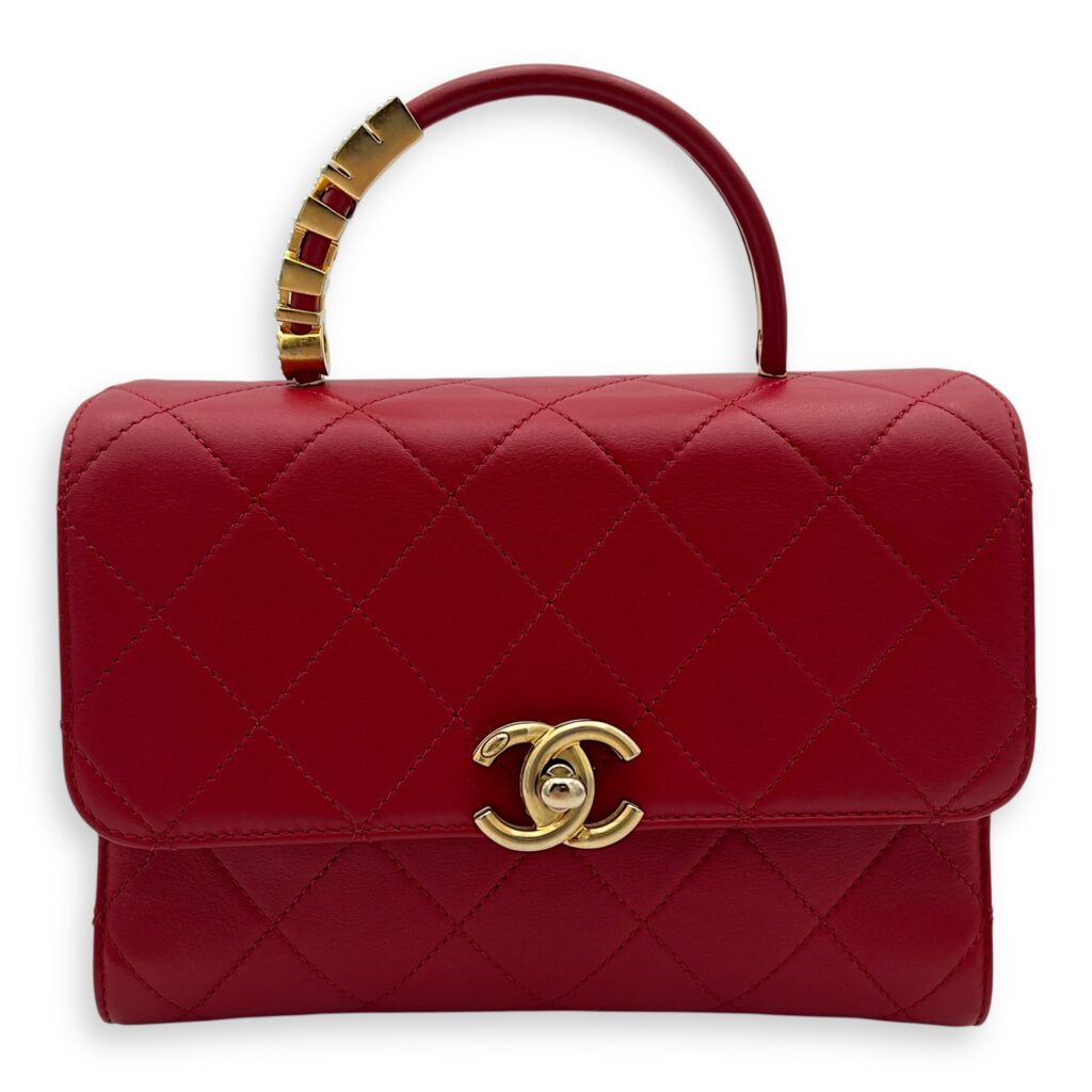 CC Pearl Top Handle Bag Red in Lambskin, Gold hardware