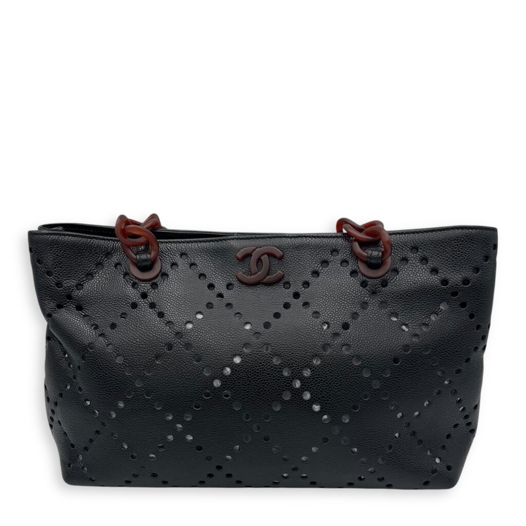 CC Perforated Black Tote Bag in Caviar Leather, Acrylic hardware