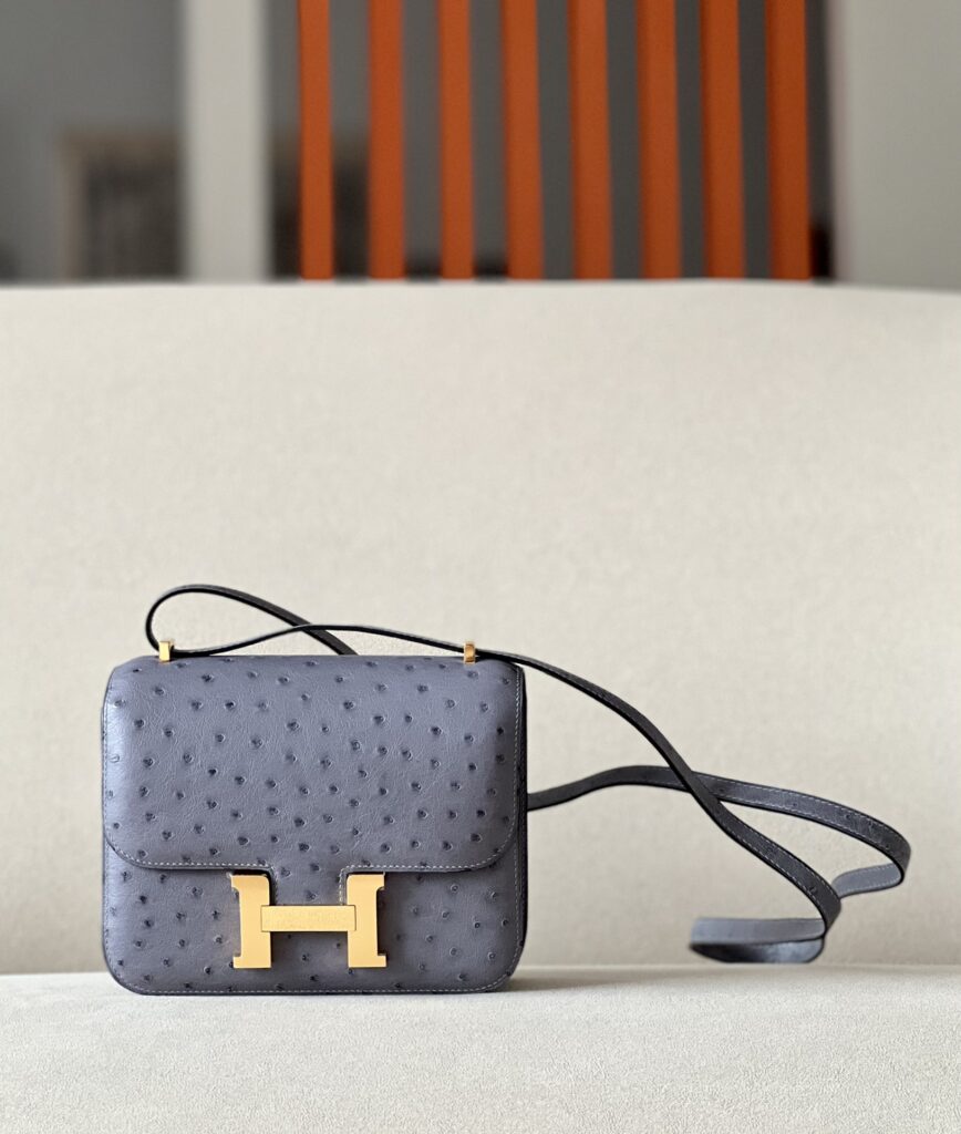 Constance 19 Ostrich Gris Asphalte (M8) Gold Hardware