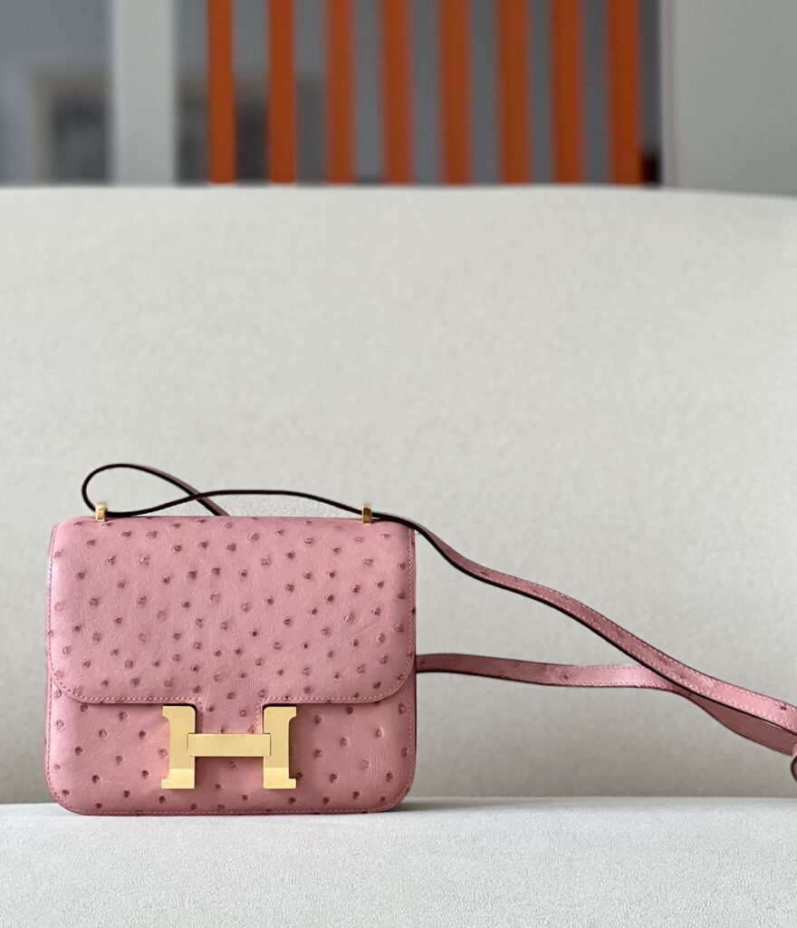 Constance 19 Ostrich Rose Tyrien (E5) Gold Hardware