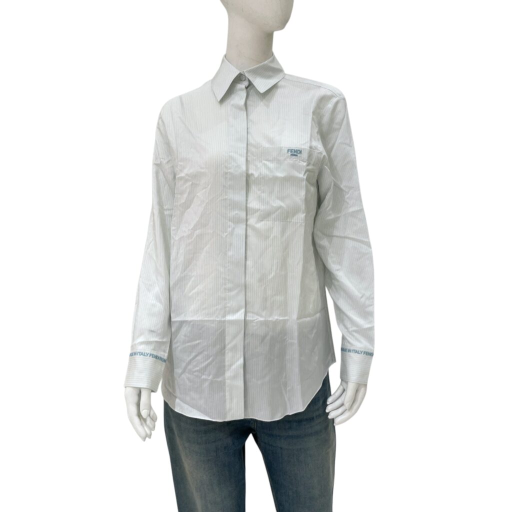 Logo-embroidered Camicia White/Blue Striped Long-Sleeve Shirt in Silk