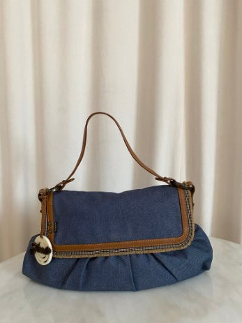 Fendi Bicolor Denim Chef Shoulder Bag W/ Bag Charm