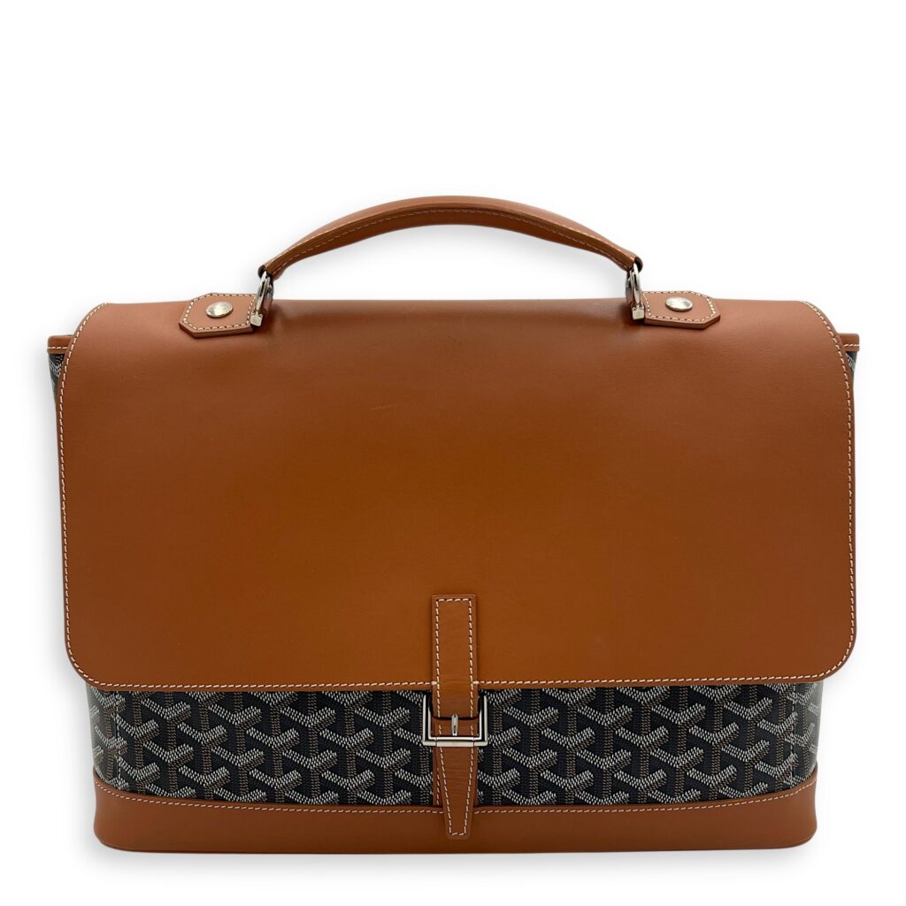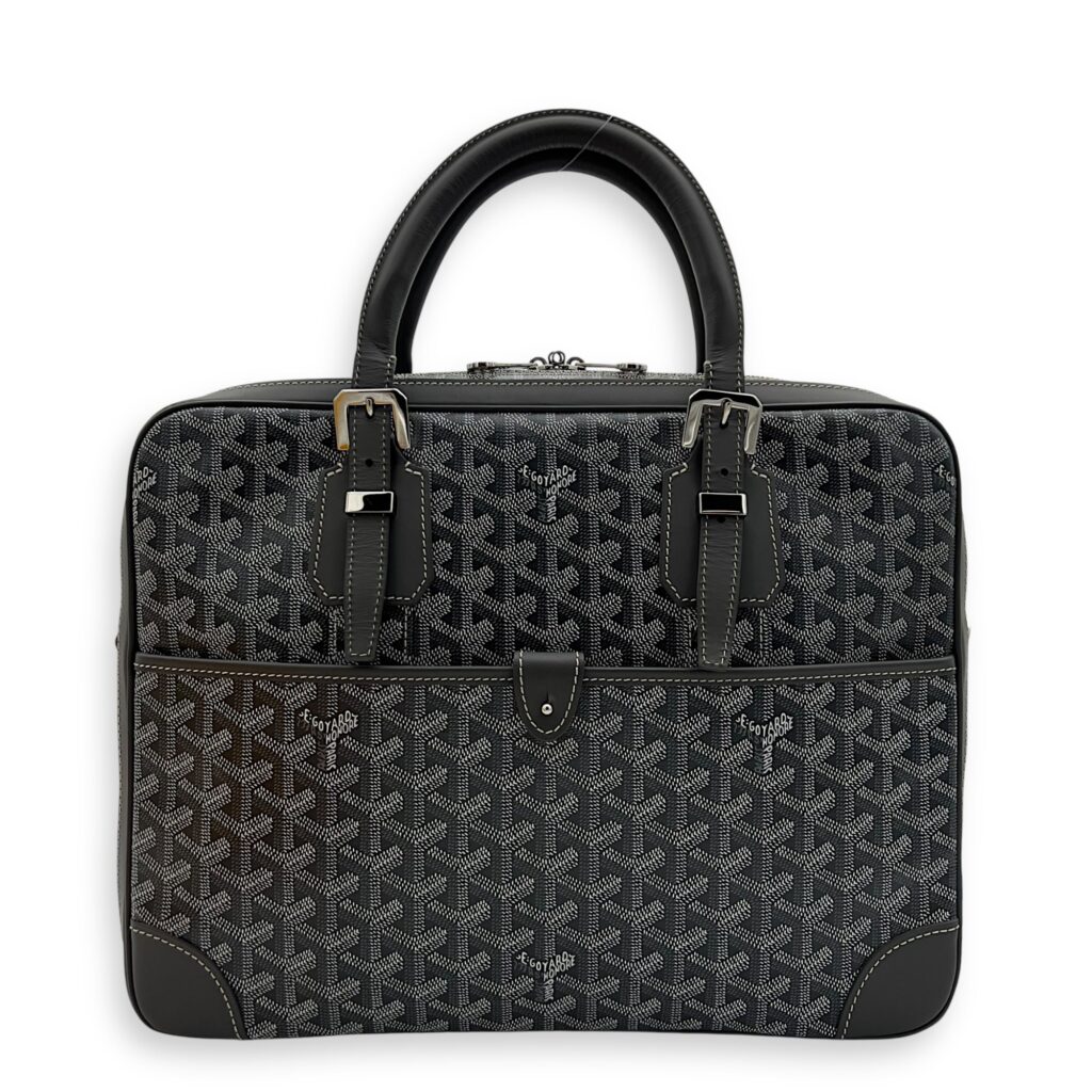 Ambassade Briefcase Grey in Coated Canvas, Silver hardware