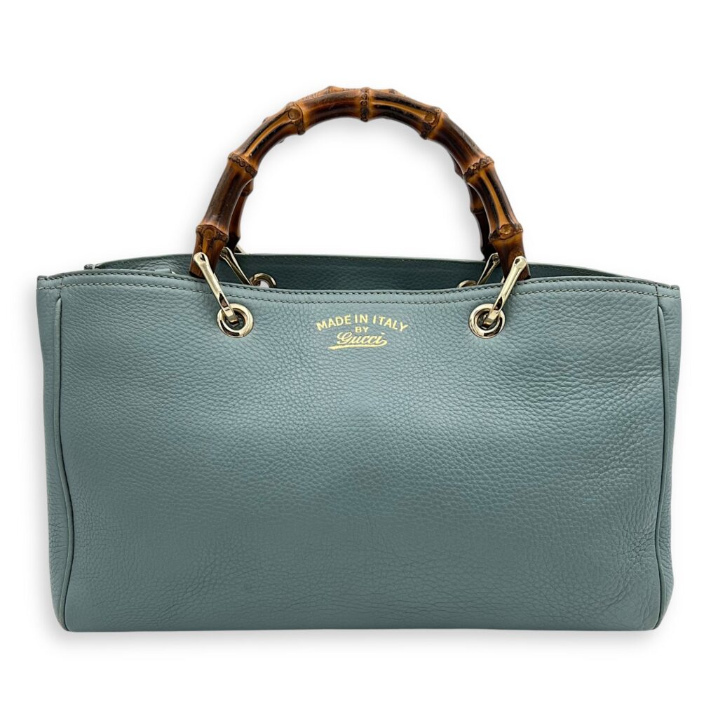 Bamboo Top Handle Bag Blue in Calfskin, Gold hardware