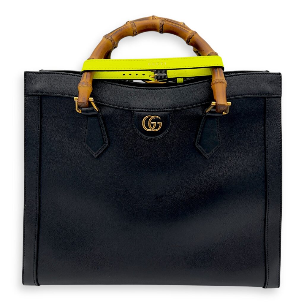 Diana Top Handle Bag Black in Calfskin, Gold hardware