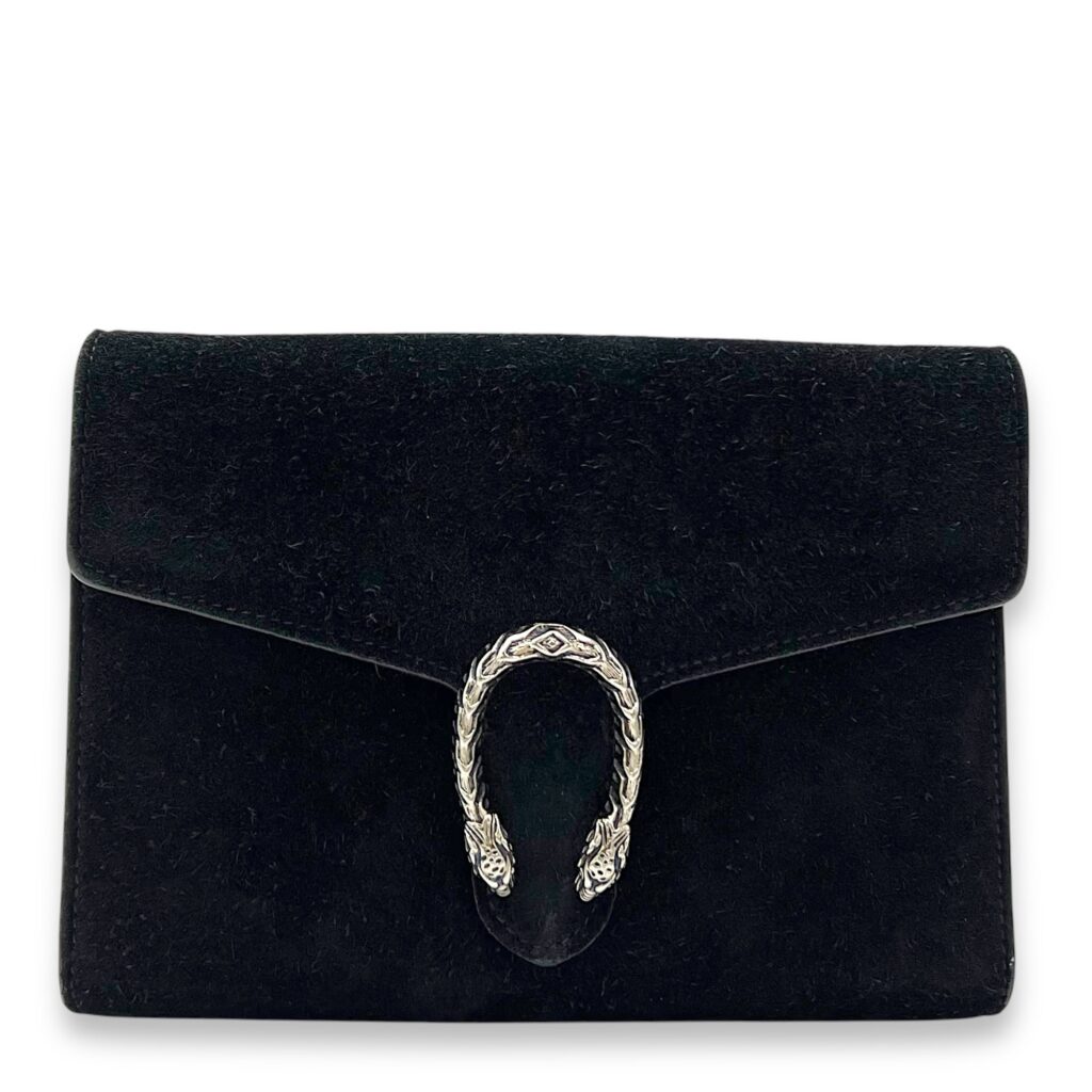 Dionysus Black Wallet On Chain in Suede Leather, Ruthenium hardware
