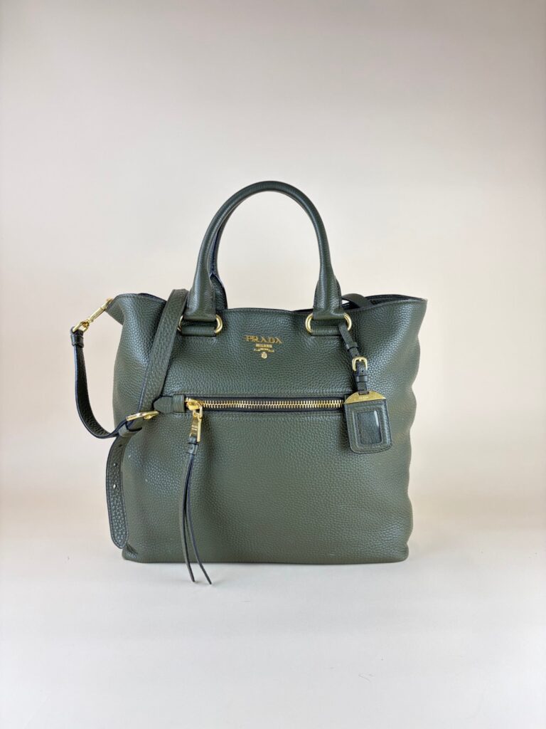 Prada Dark Green Vitello Daino Shopping Tote Bag