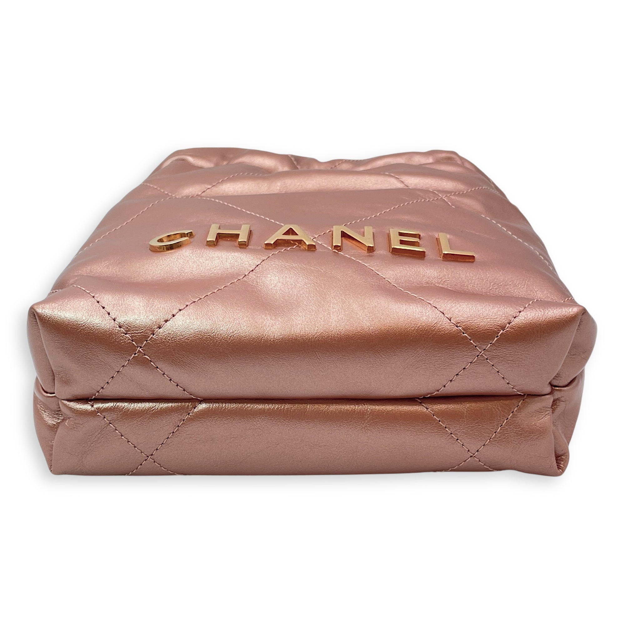 22 Tote 20 Pink Crossbody Bag in Metallic, Rose Gold hardware