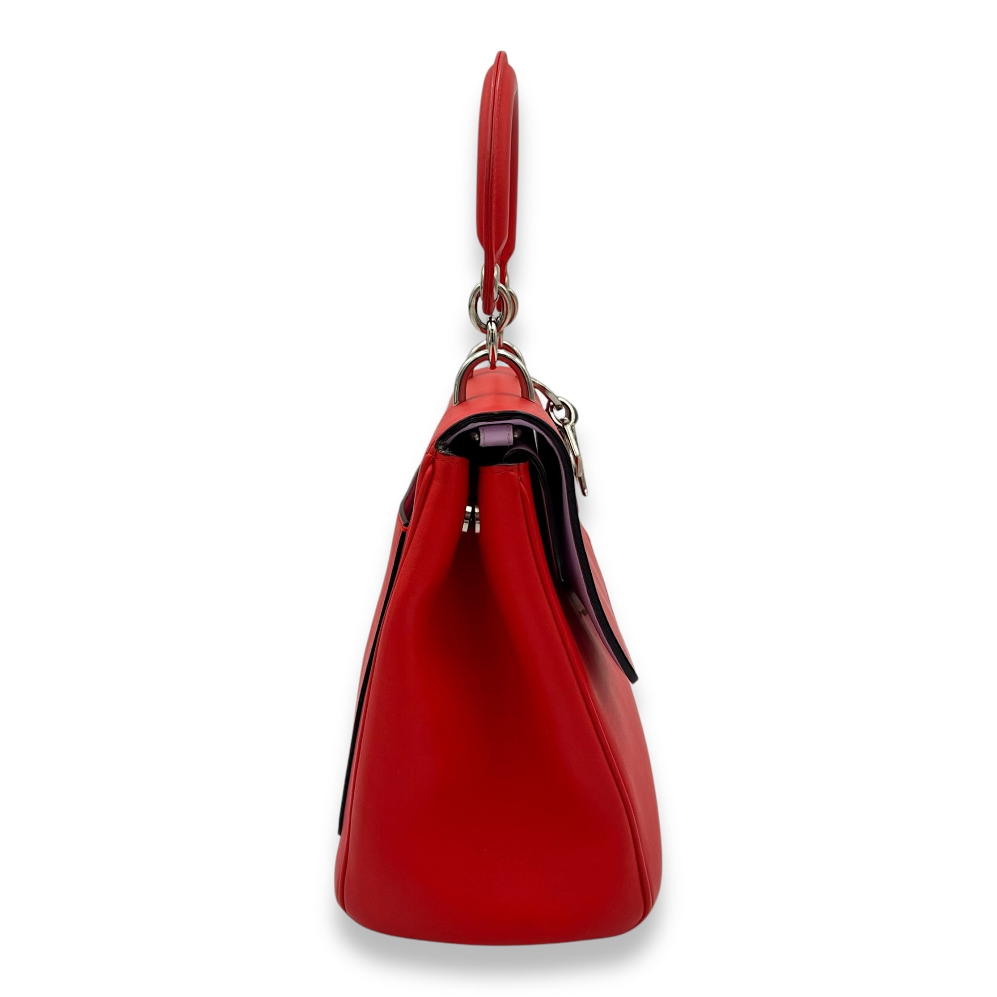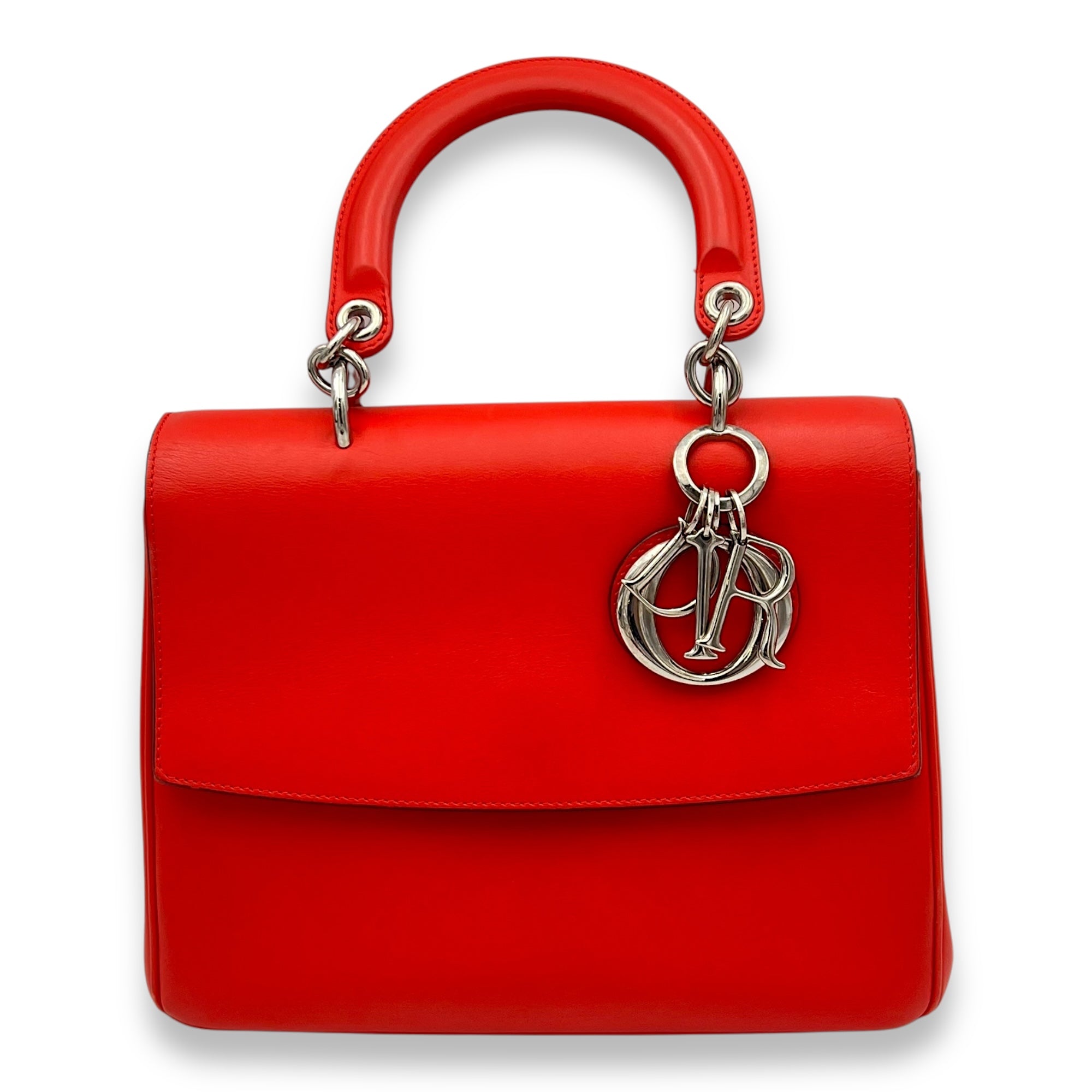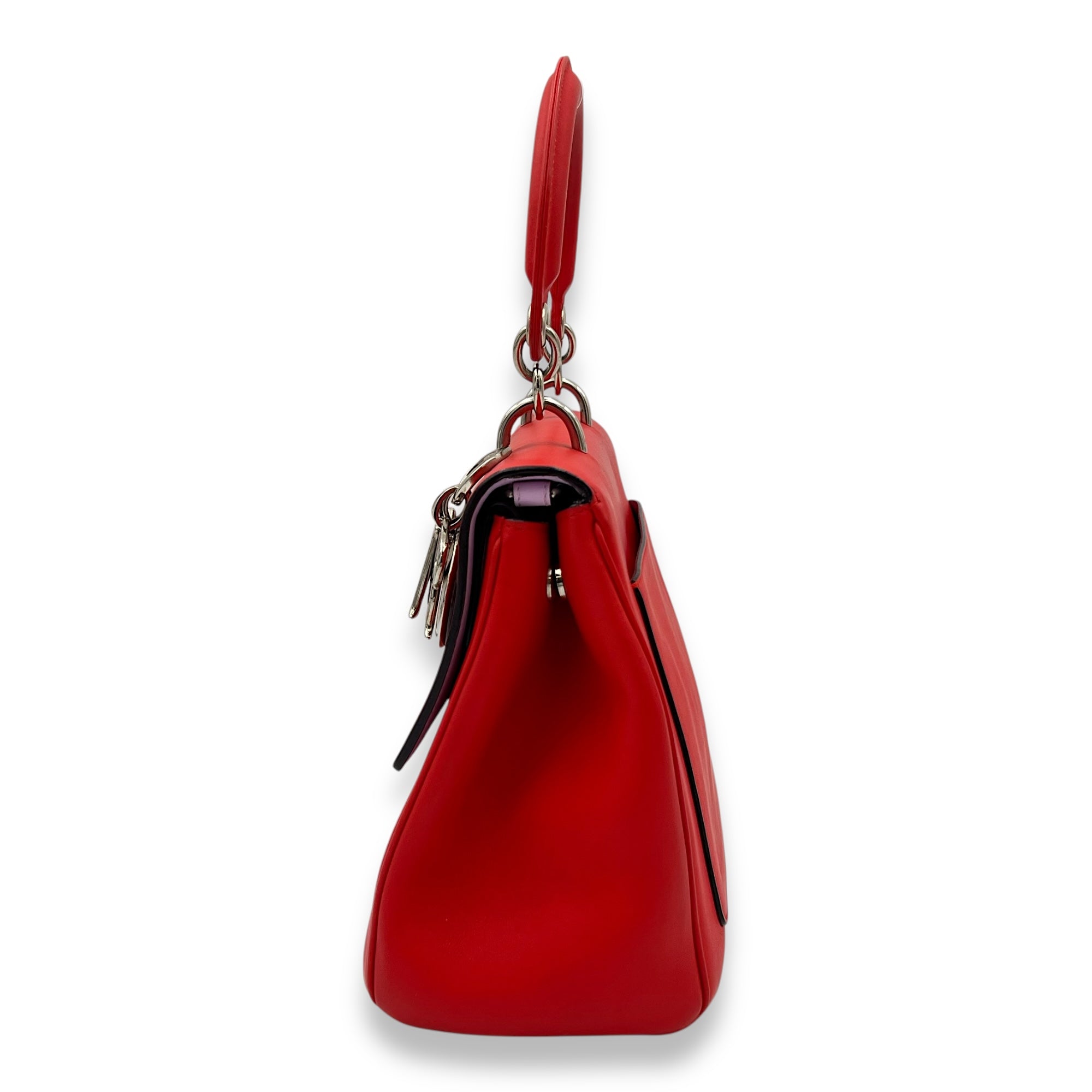 Be Dior Top Handle Bag Red in Calfskin, Silver hardware