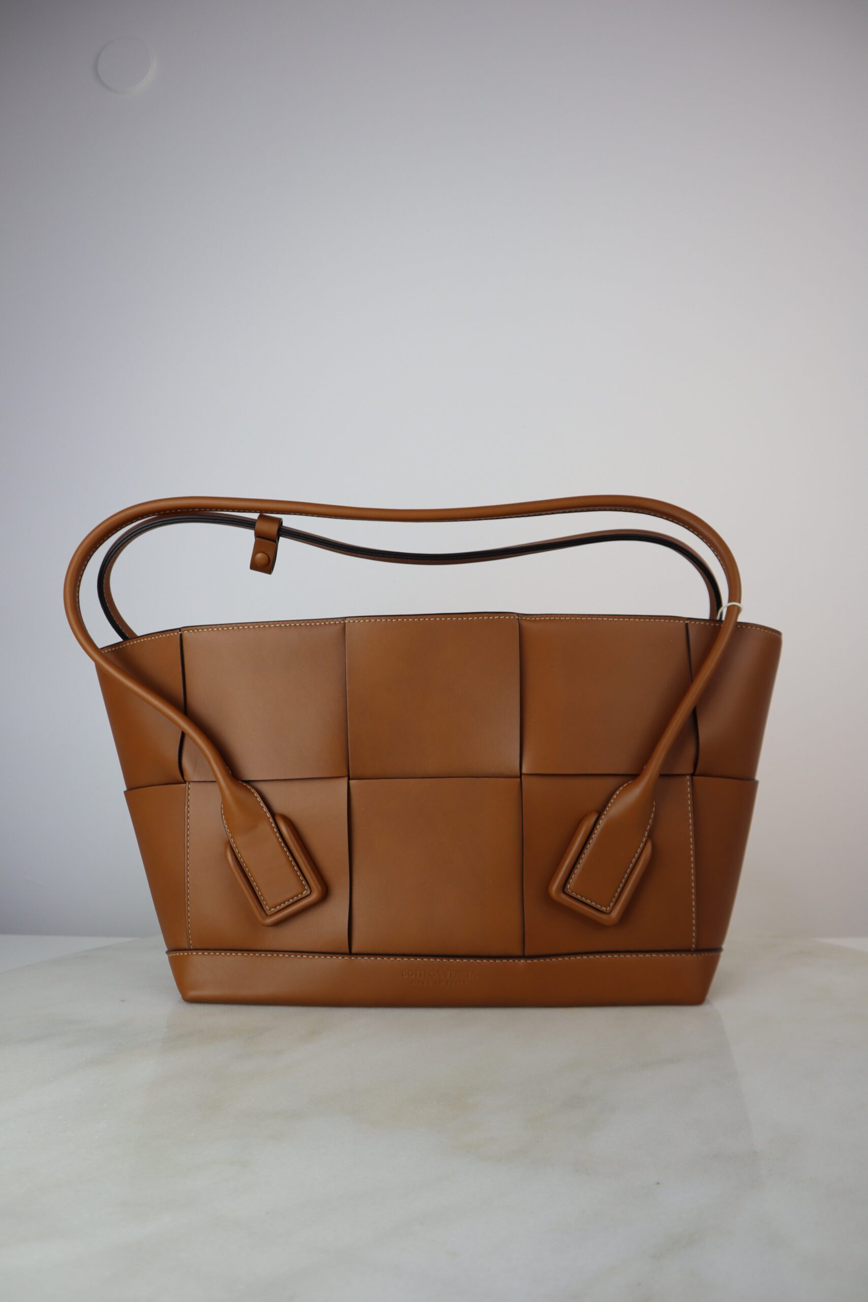 Be the first to review “Bottega Veneta Camel Arco Medium Top Handle Bag”