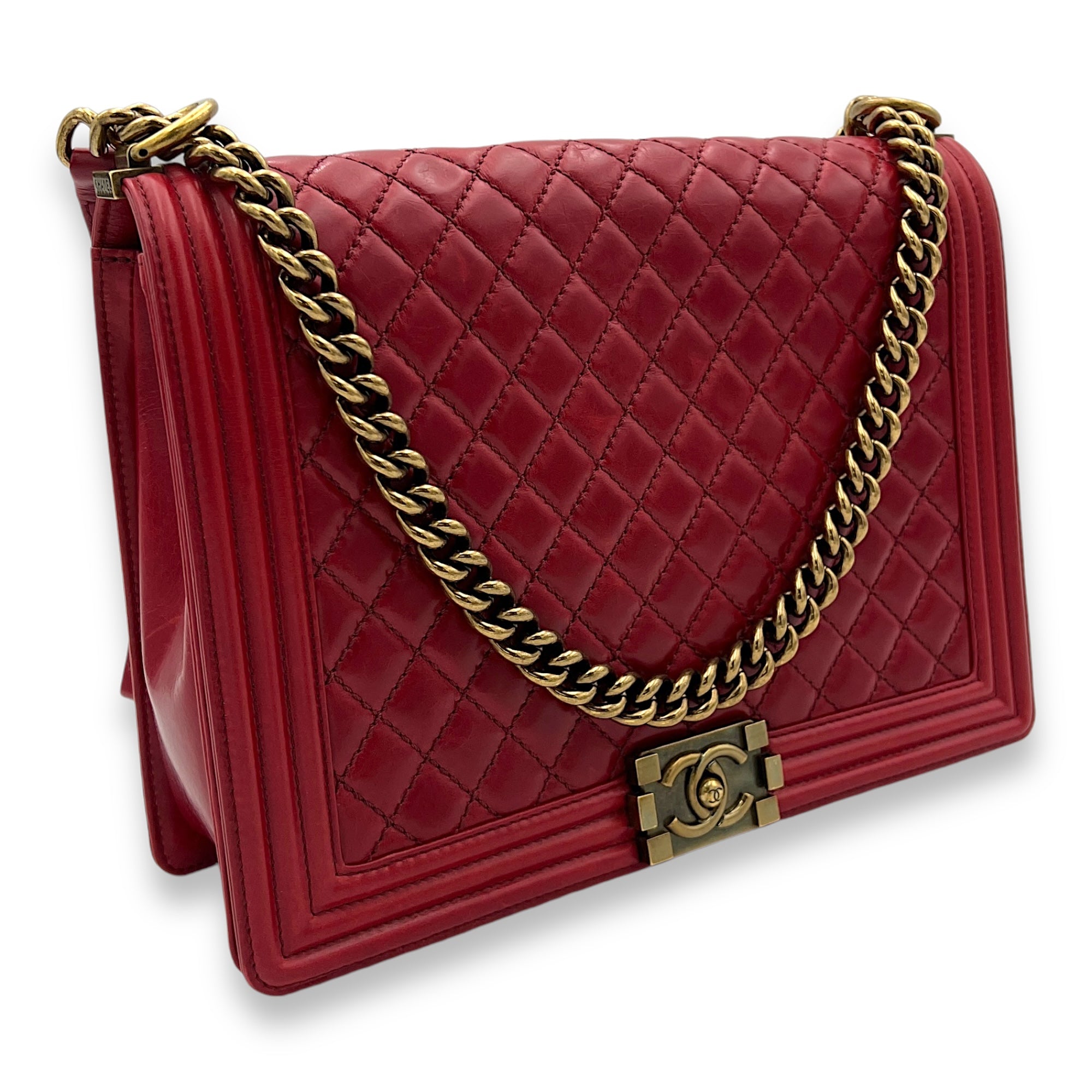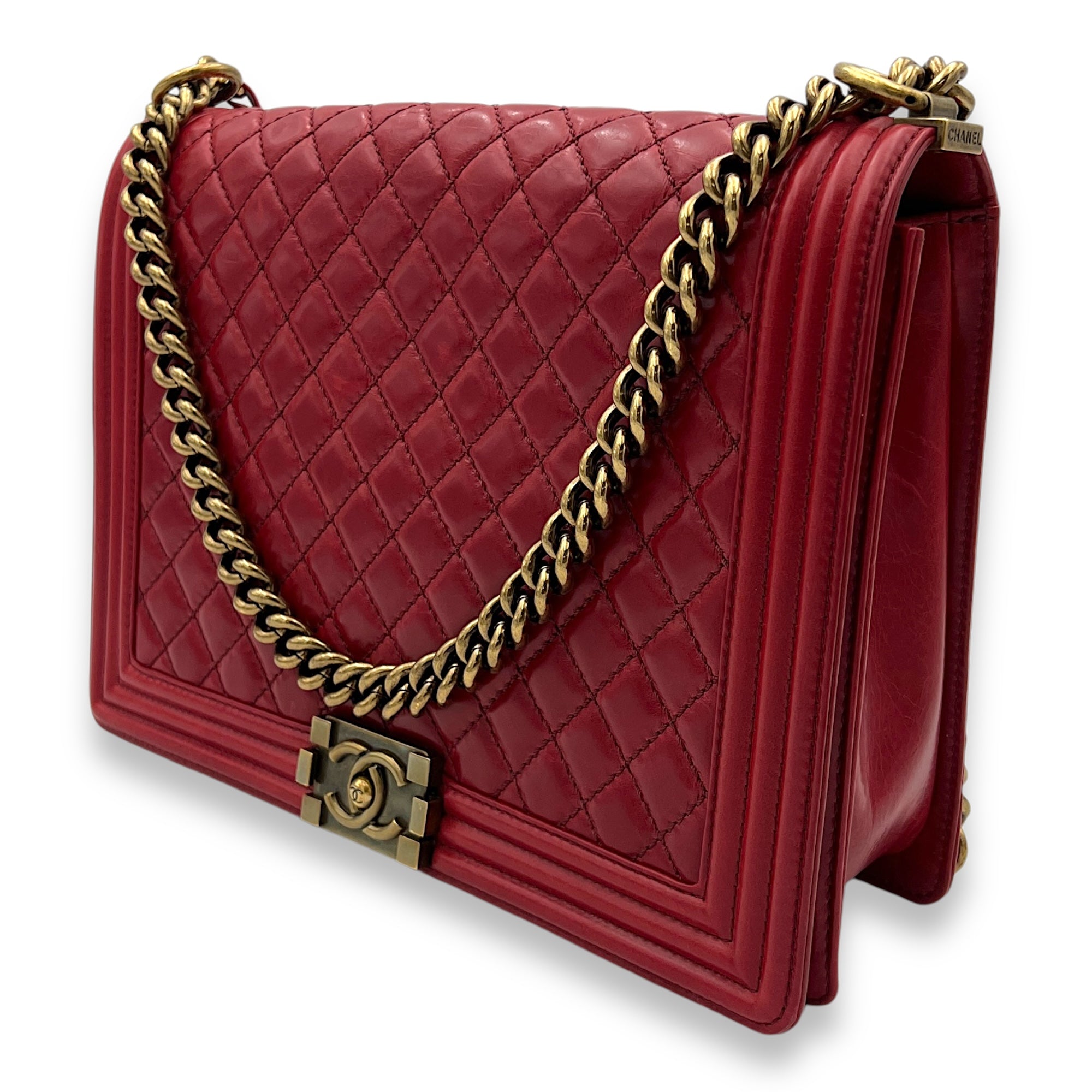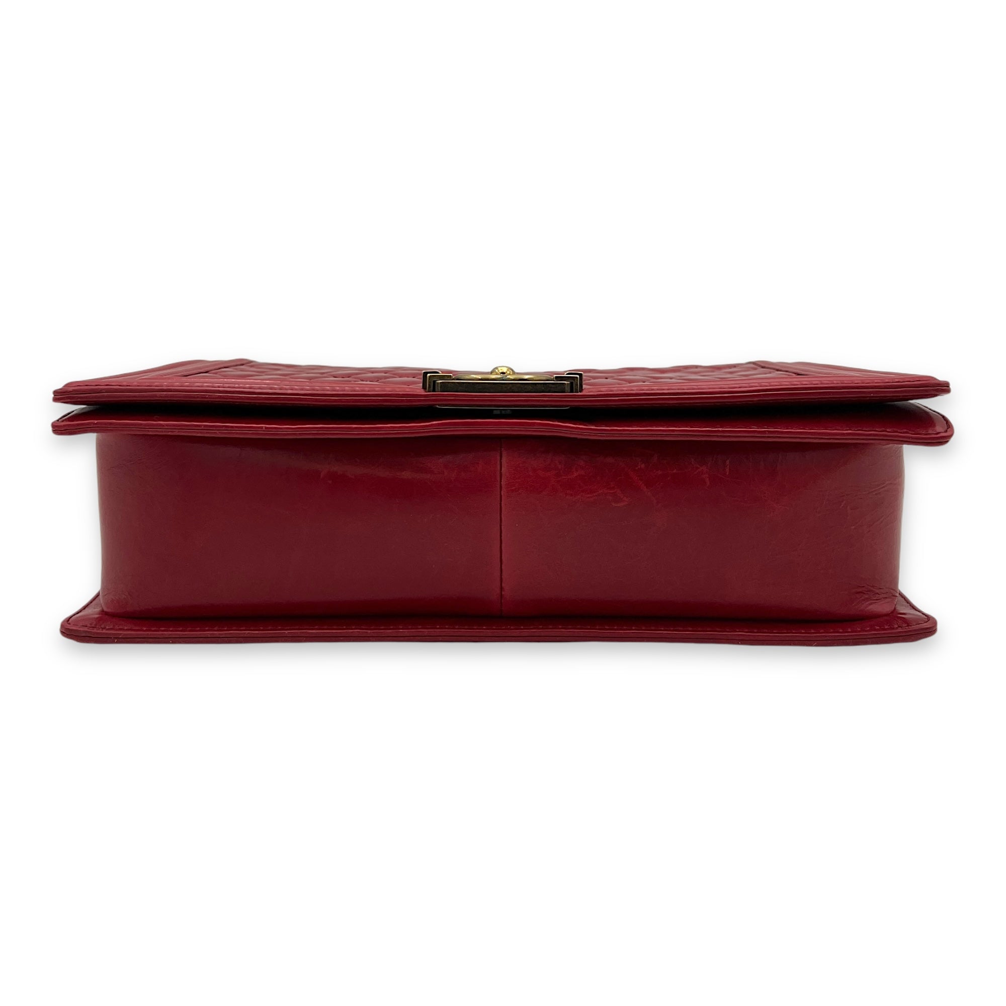 Boy Shoulder Bag Large Red in Calfskin, Gold hardware
