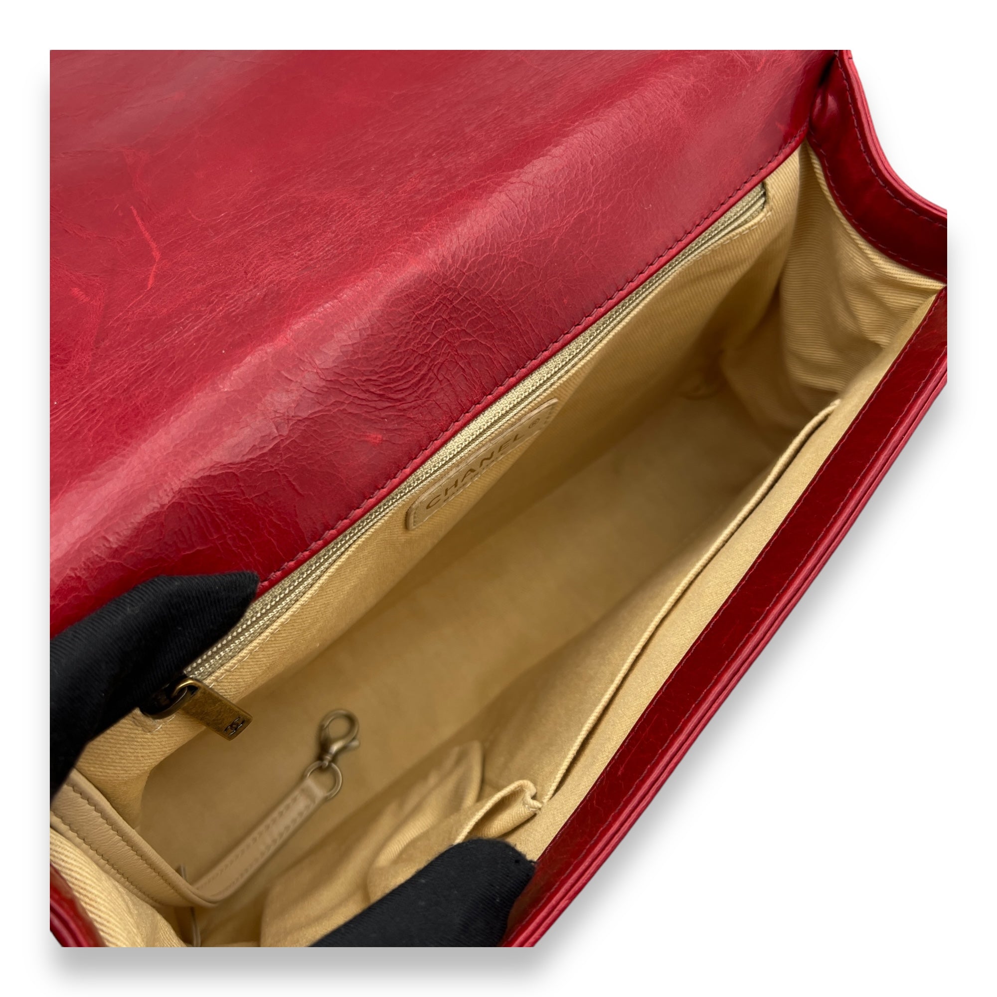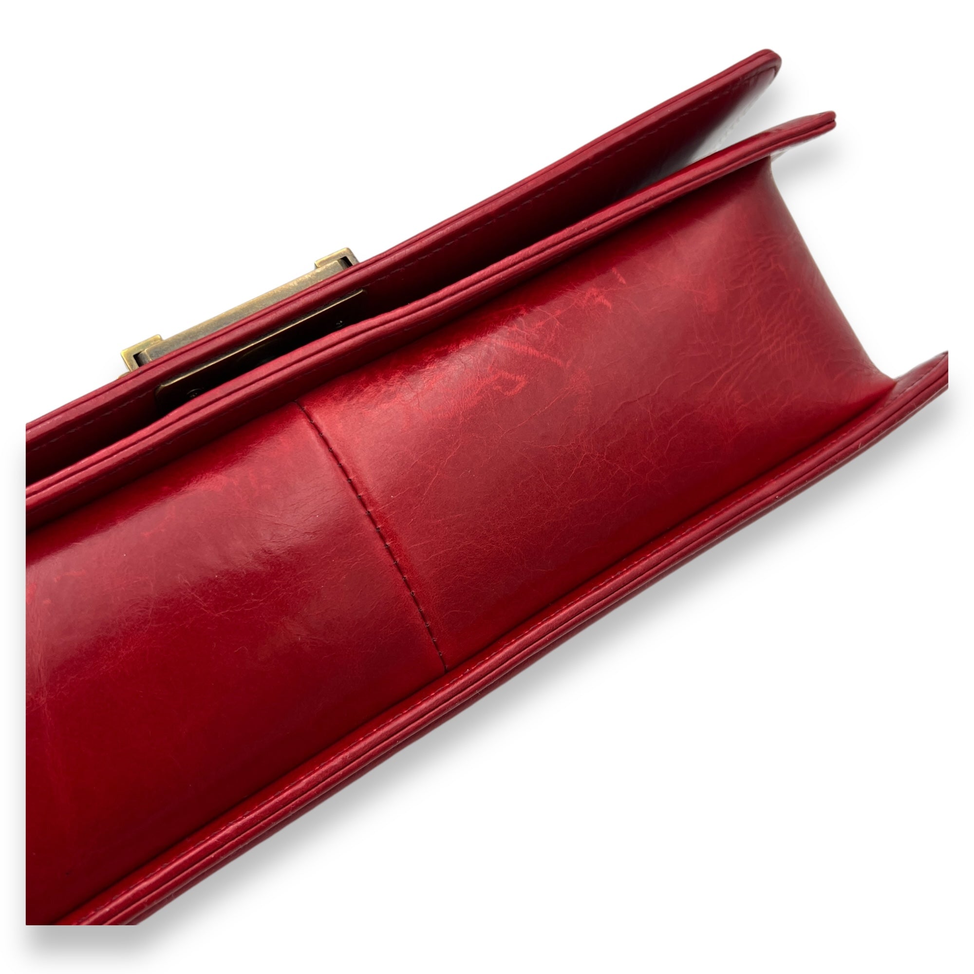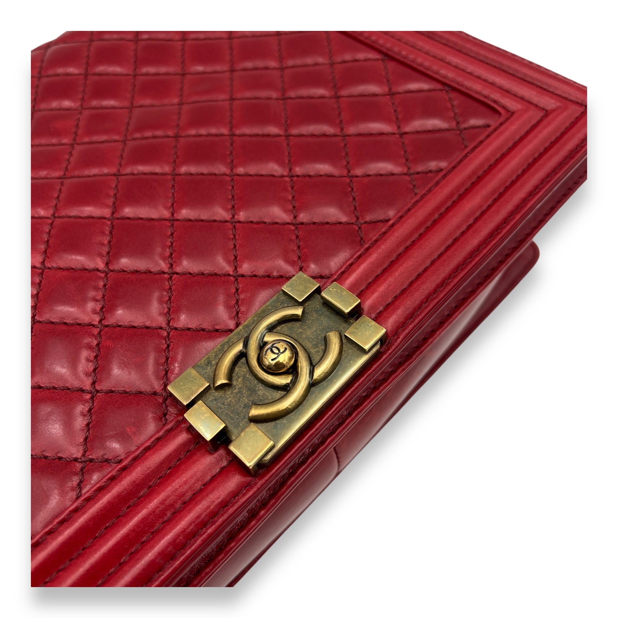 Boy Shoulder Bag Large Red in Calfskin, Gold hardware
