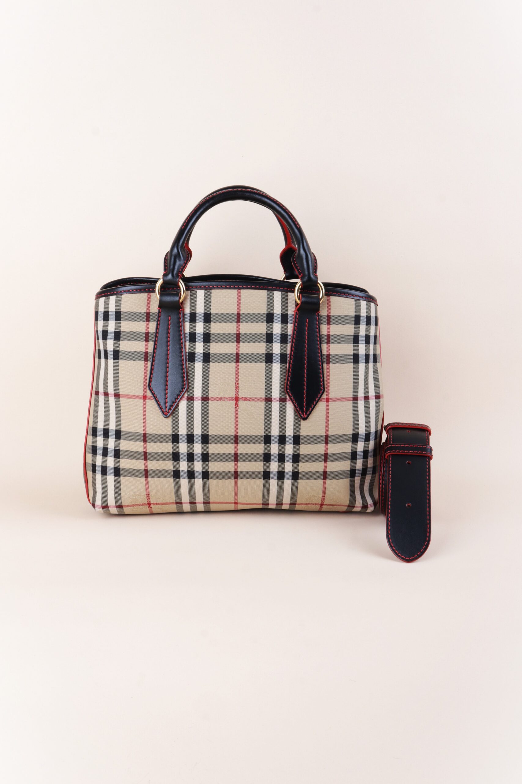 Burberry Bicolor Ballingdon Contrast Stitch Medium Top Handle Bag