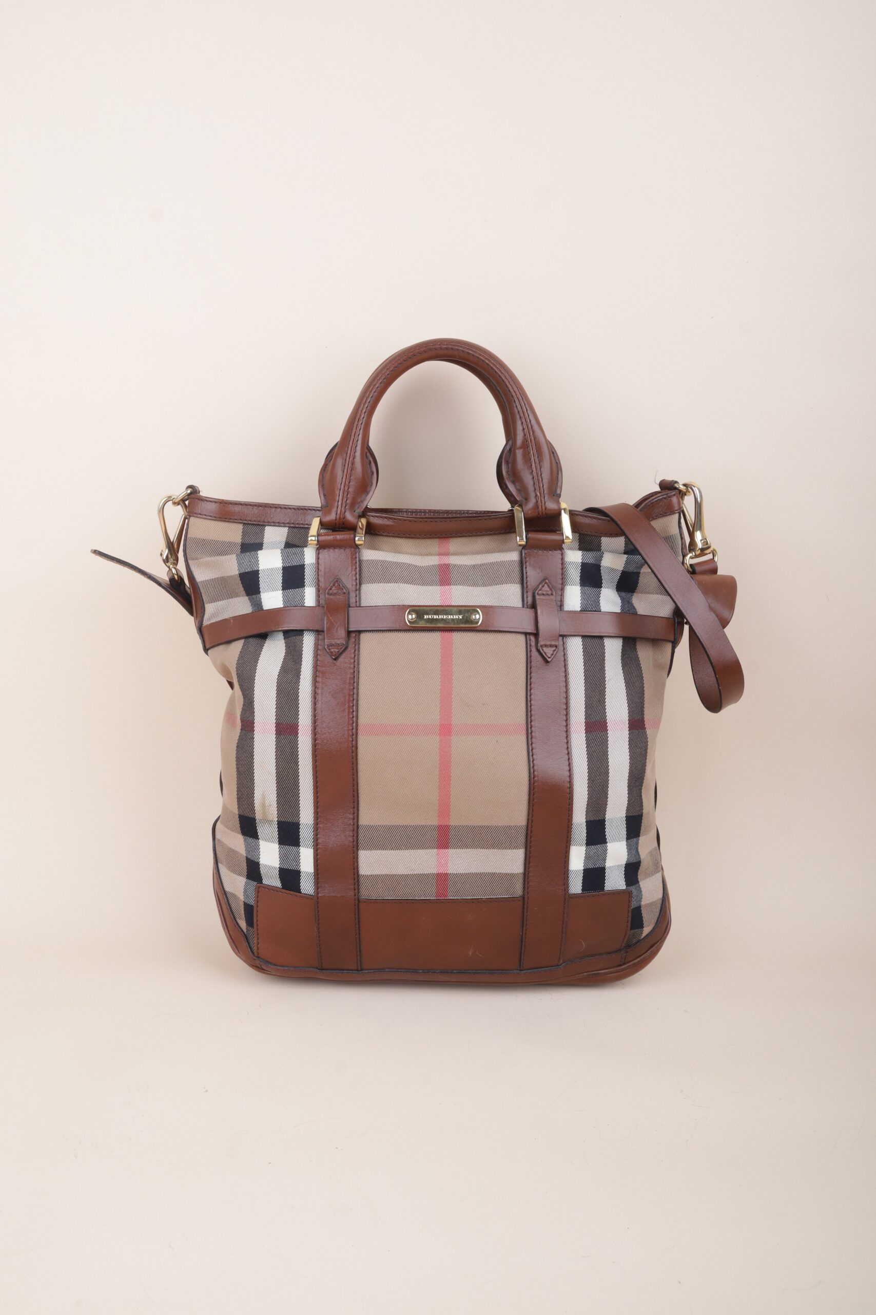 Burberry Bicolor House Check Bridle Kenny Tote Bag with Strap