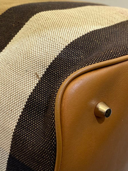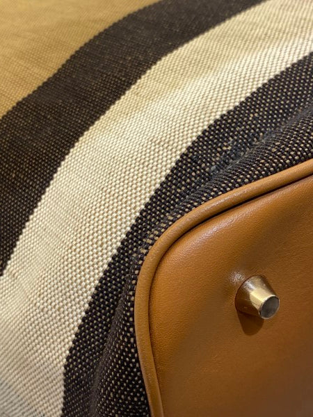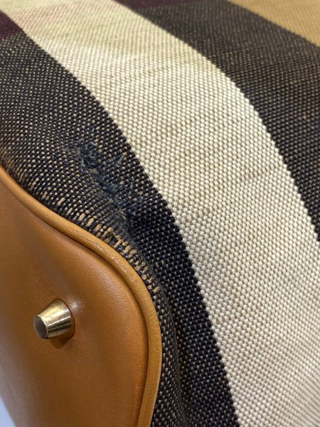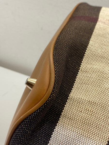 • Material: Haymarket Check Canvas with Brown Leather Trim
