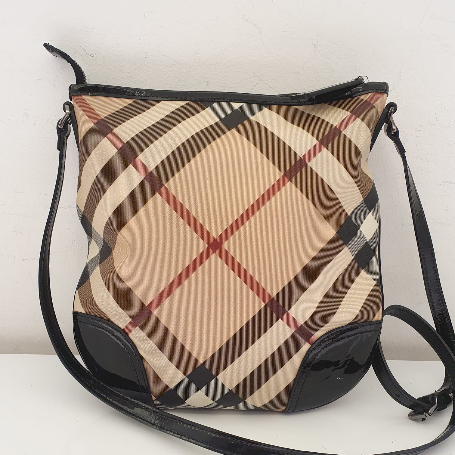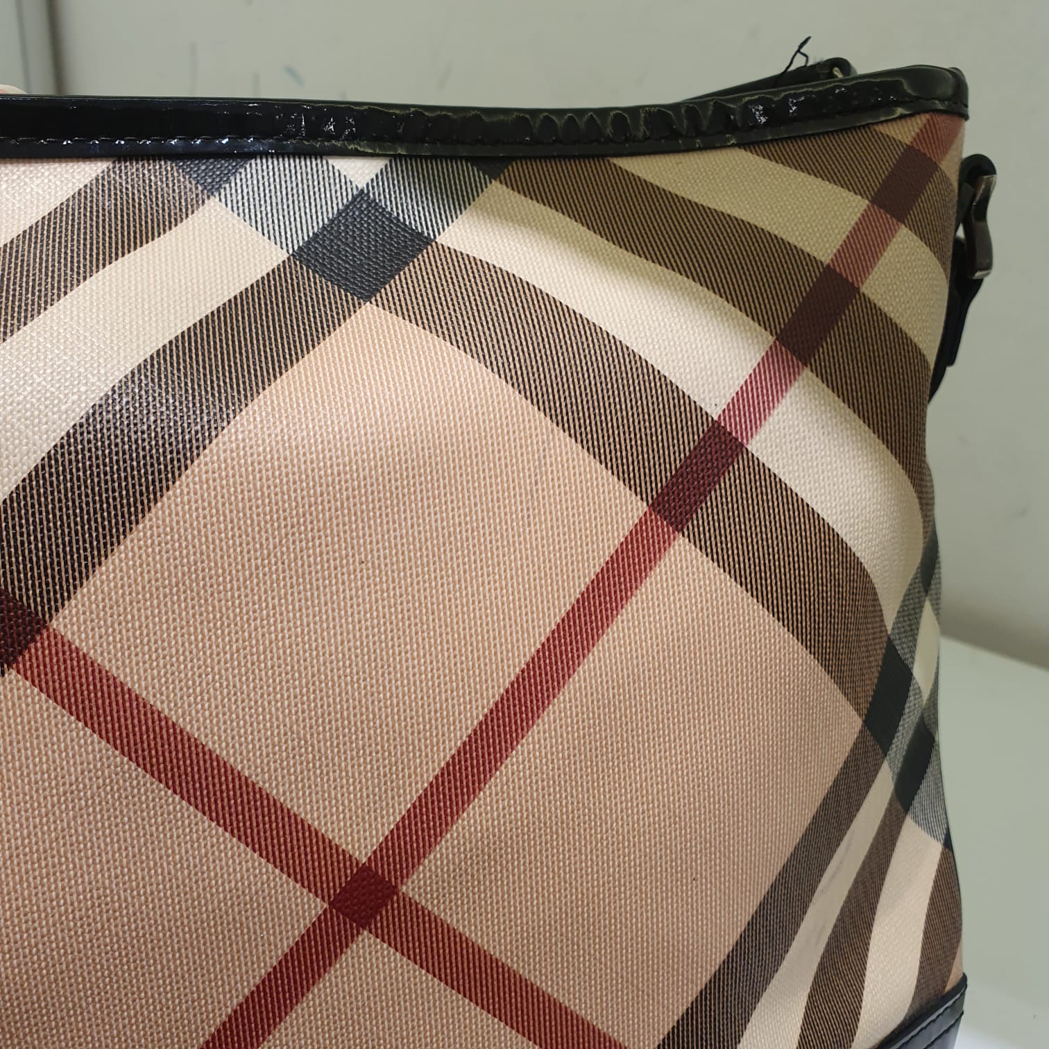 • Material: Supernova Check Coated Canvas with Black Patent Leather