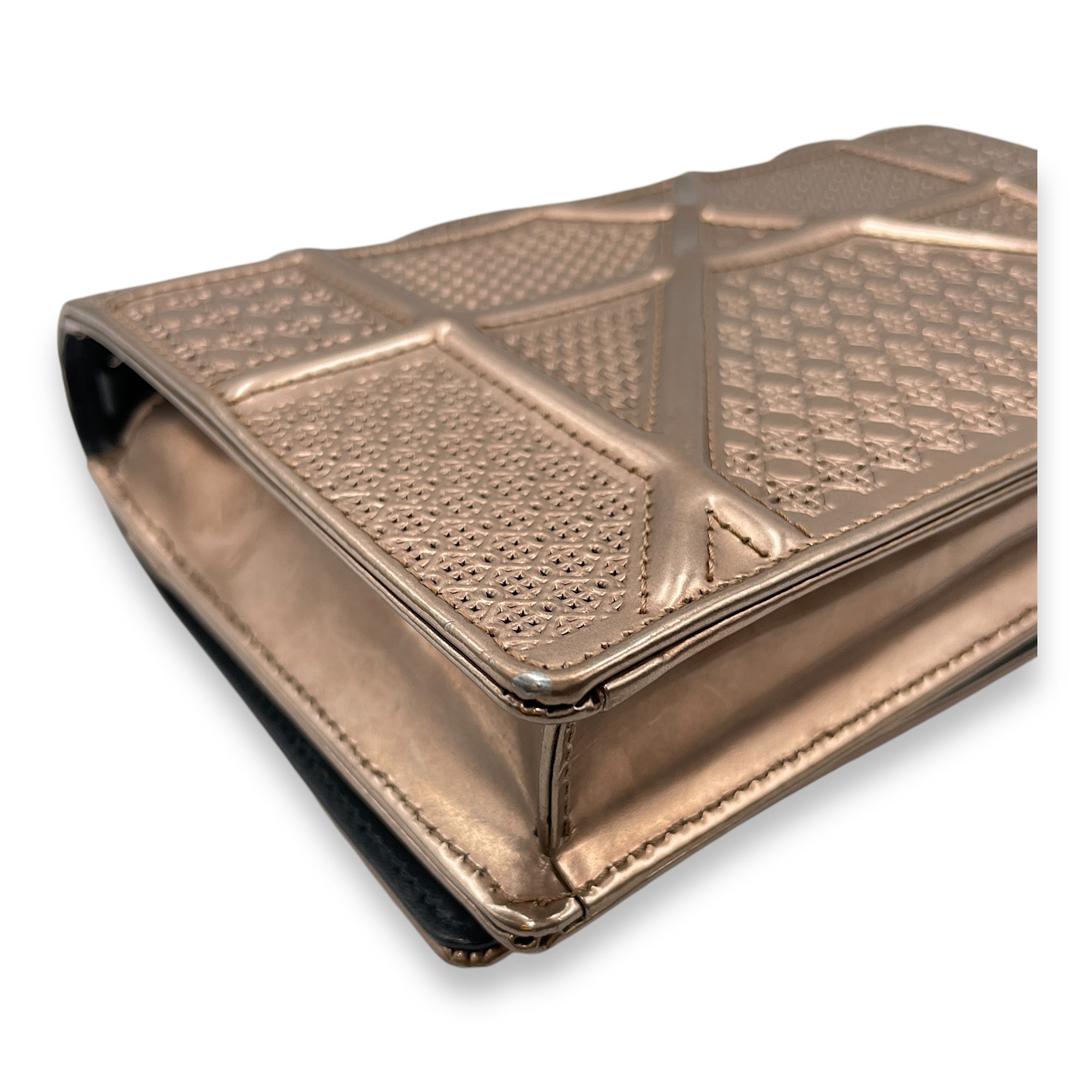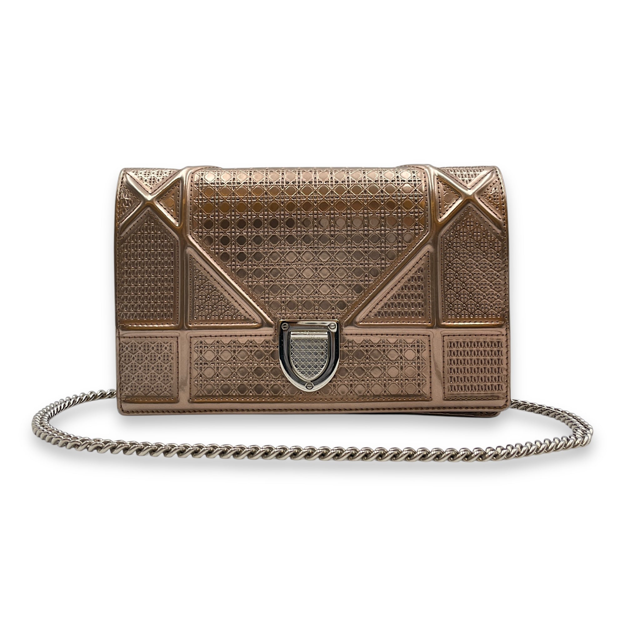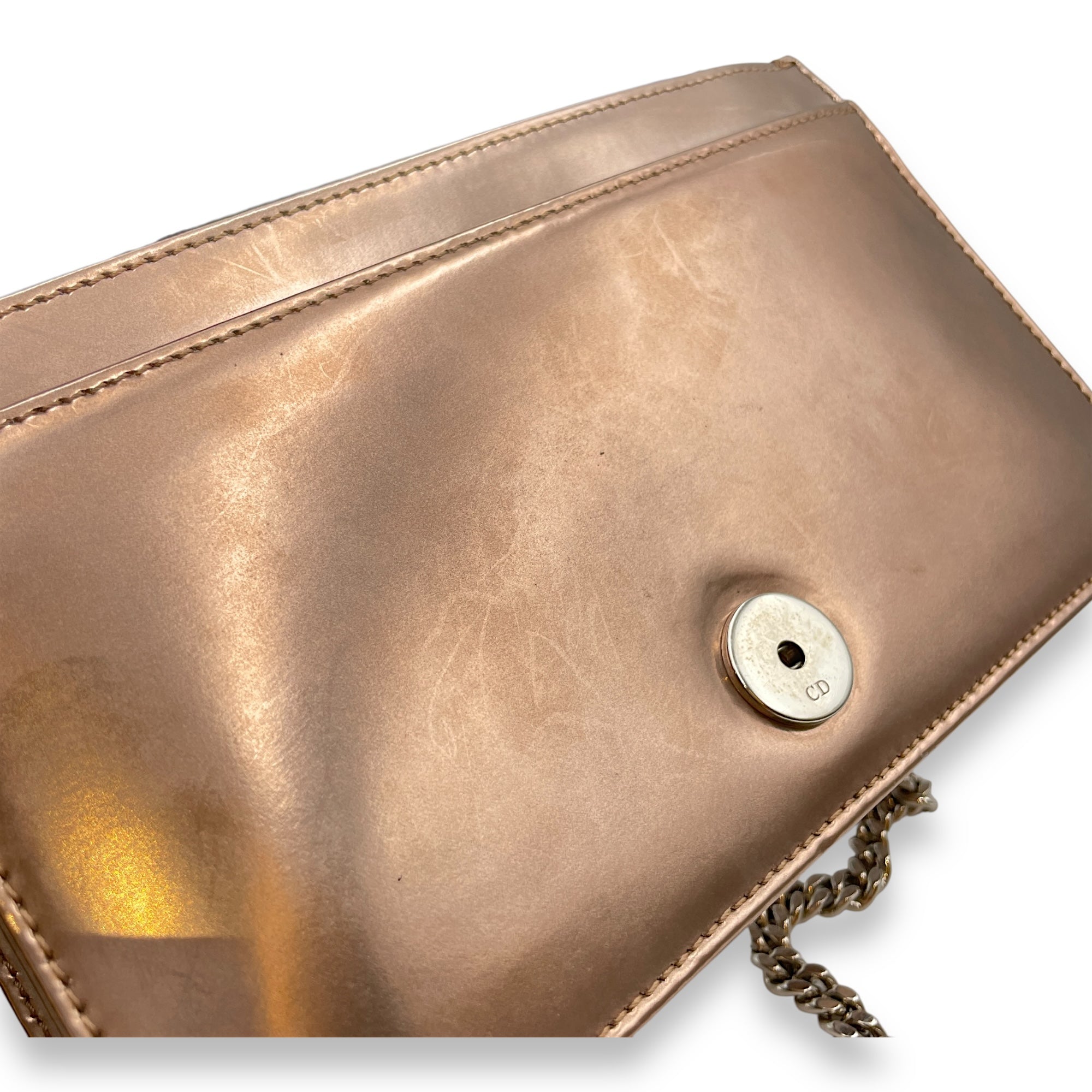 Cannage Micro Gold Wallet on Chain in Metallic Patent Leather, Silver hardware