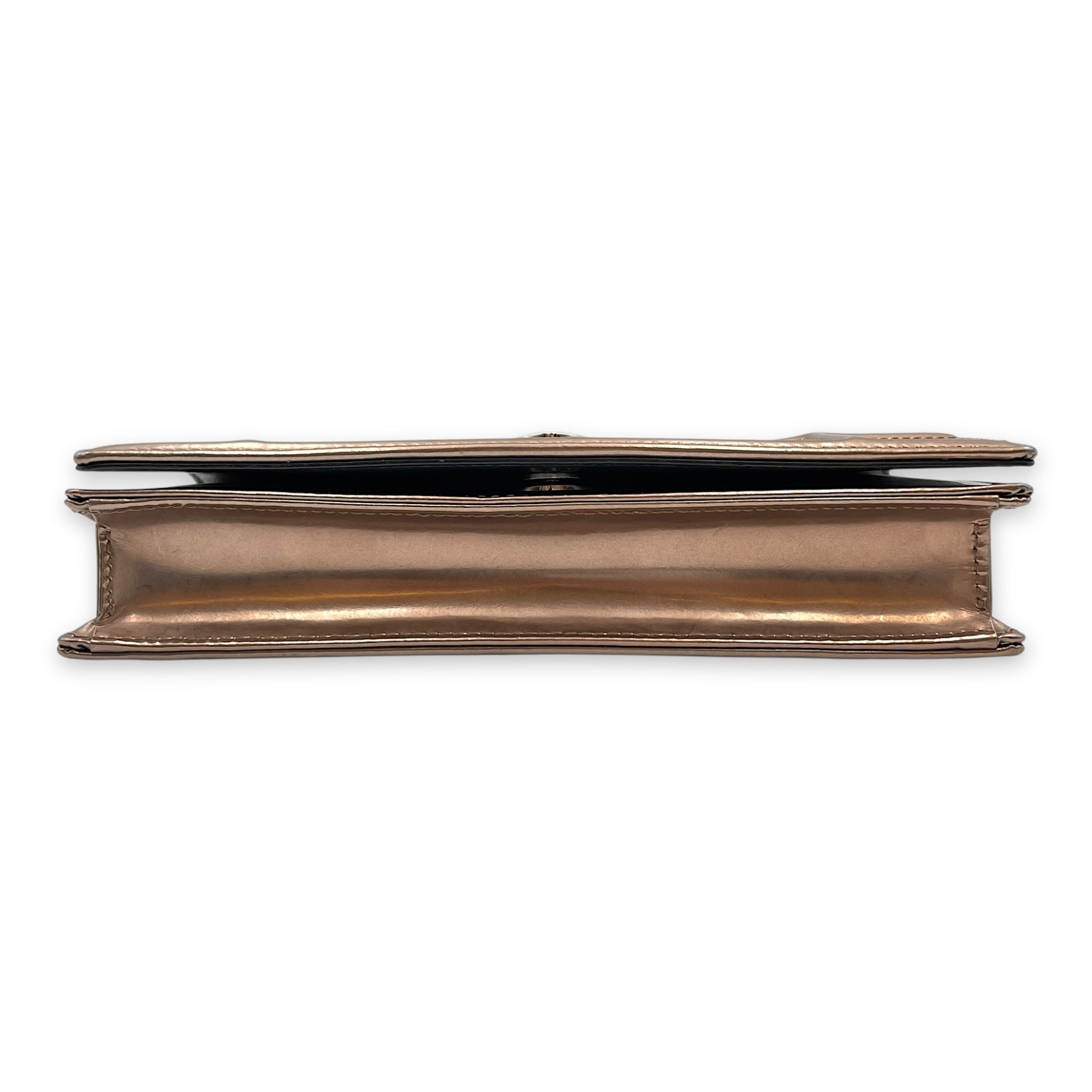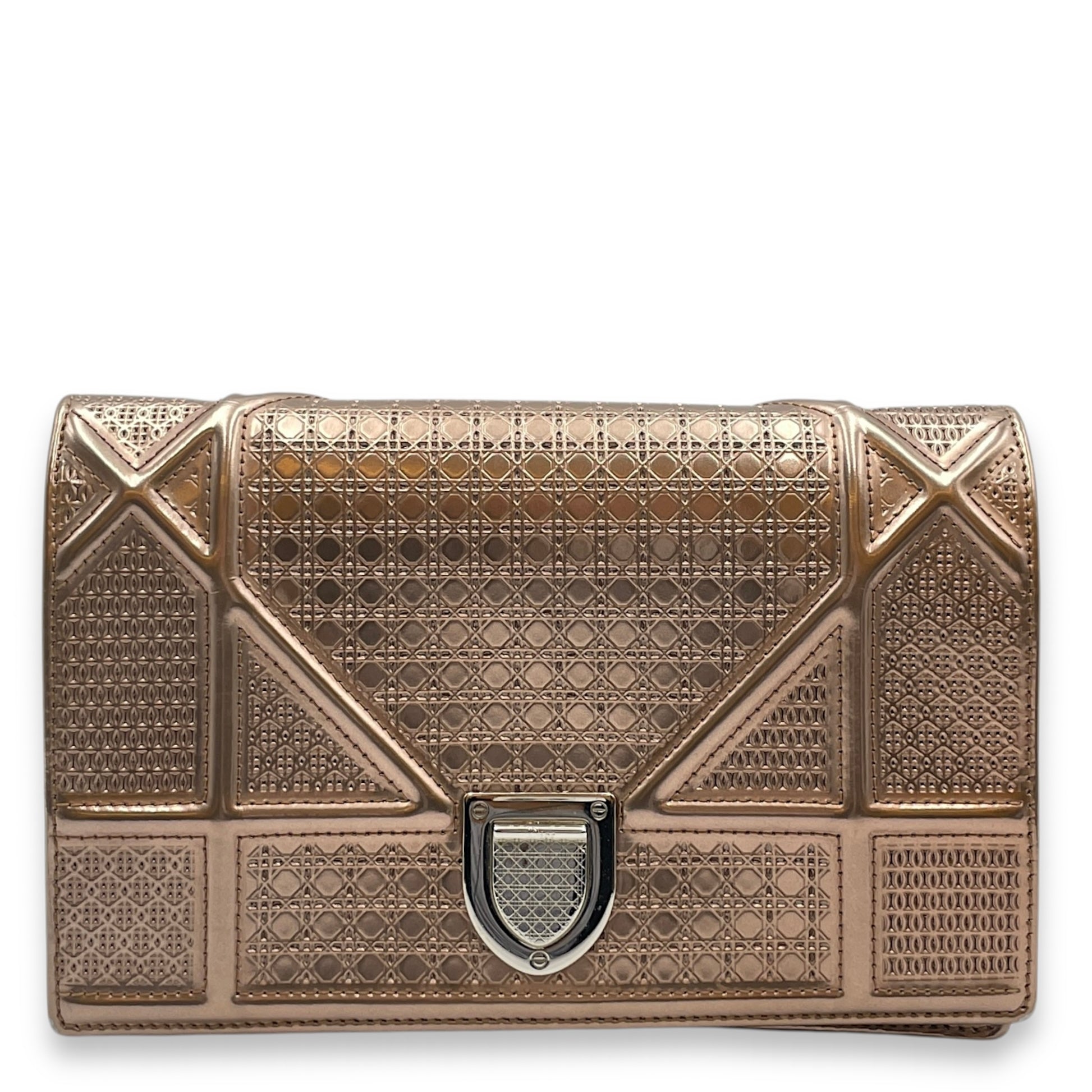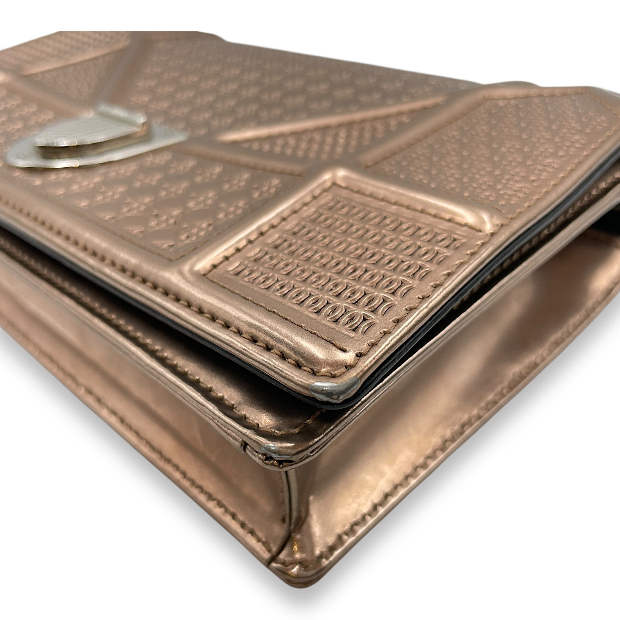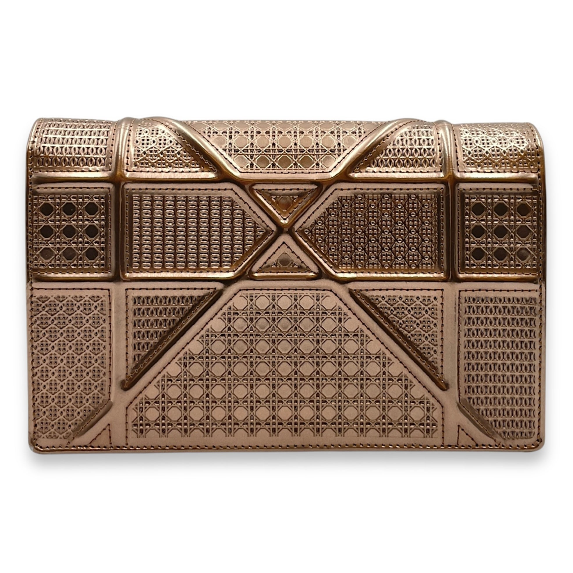 Cannage Micro Gold Wallet on Chain in Metallic Patent Leather, Silver hardware
