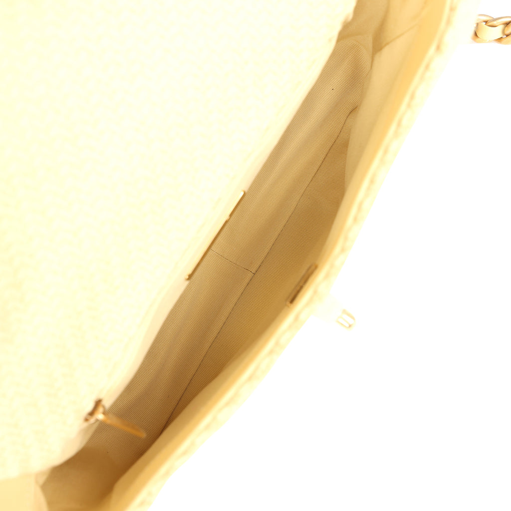 Chanel Medium 19 Flap Bag Light Yellow Wool Mixed Metal Hardware Shop for an authentic Chanel Medium 19 Flap in yellow wool with mixed metal hardware in never worn condition at Madison Avenue Couture.