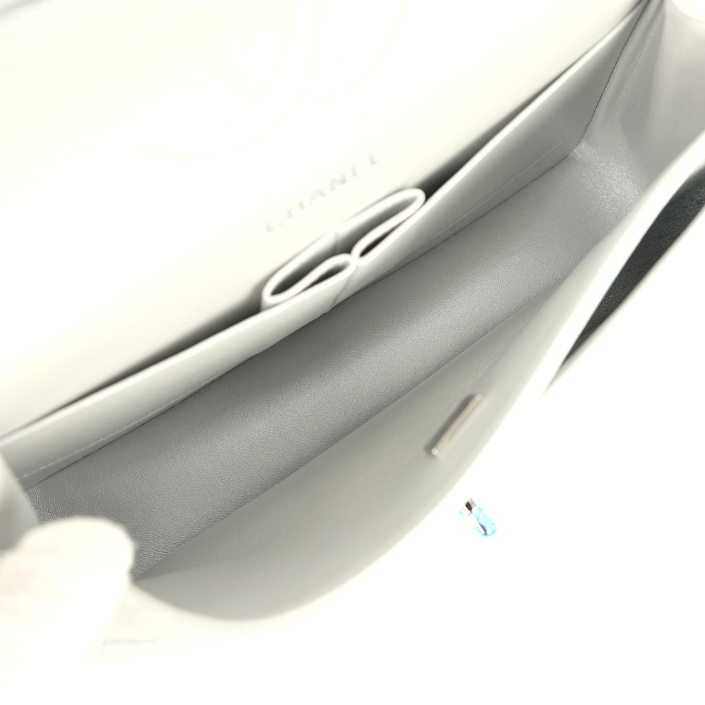Chanel Medium Classic Double Flap Silver Glitter Caviar Silver Hardware