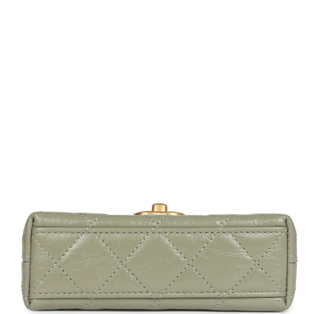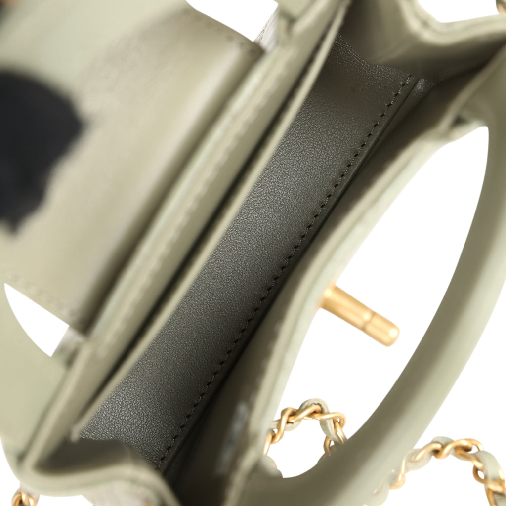 Chanel Nano Kelly Shopper Khaki Shiny Aged Calfskin Brushed Gold Hardware