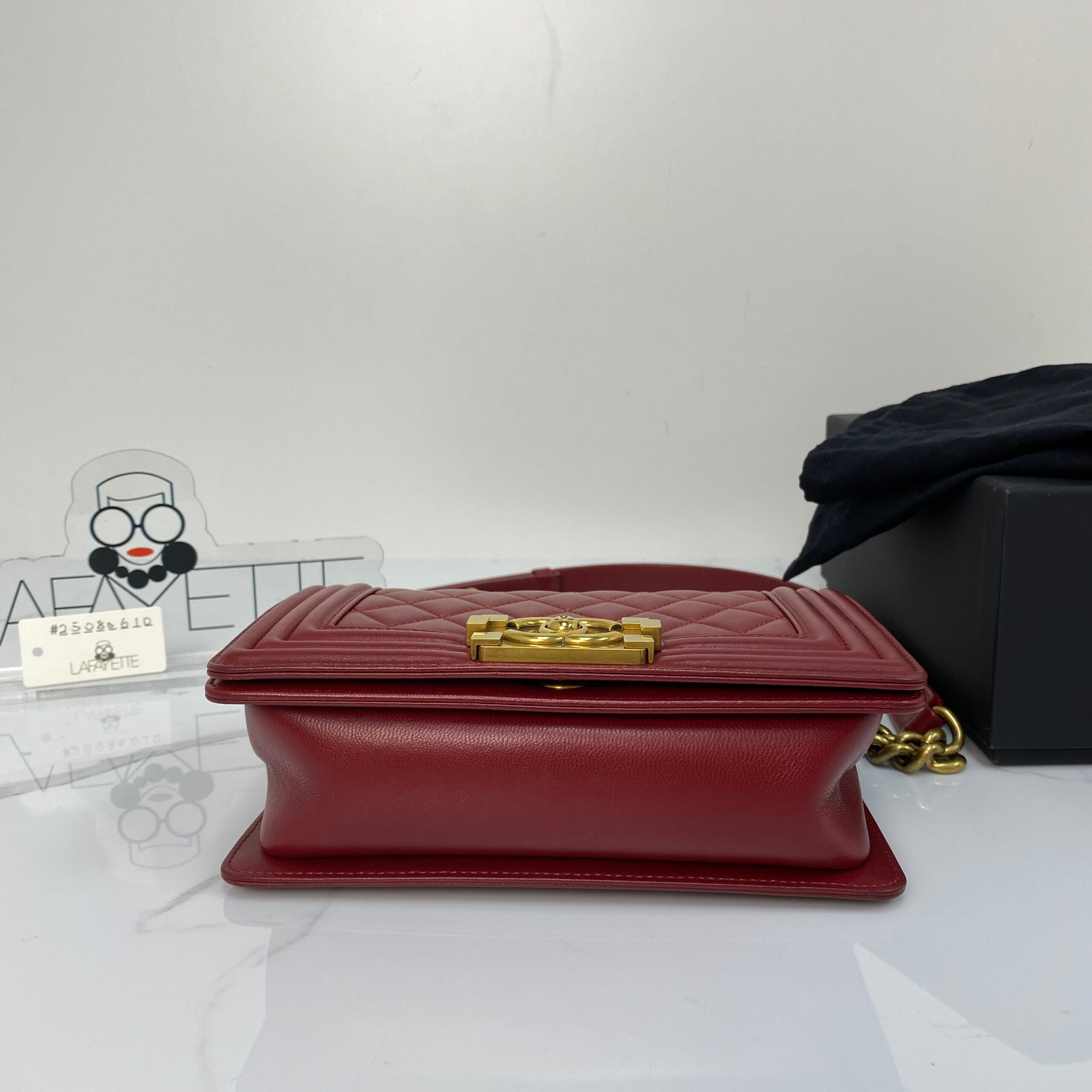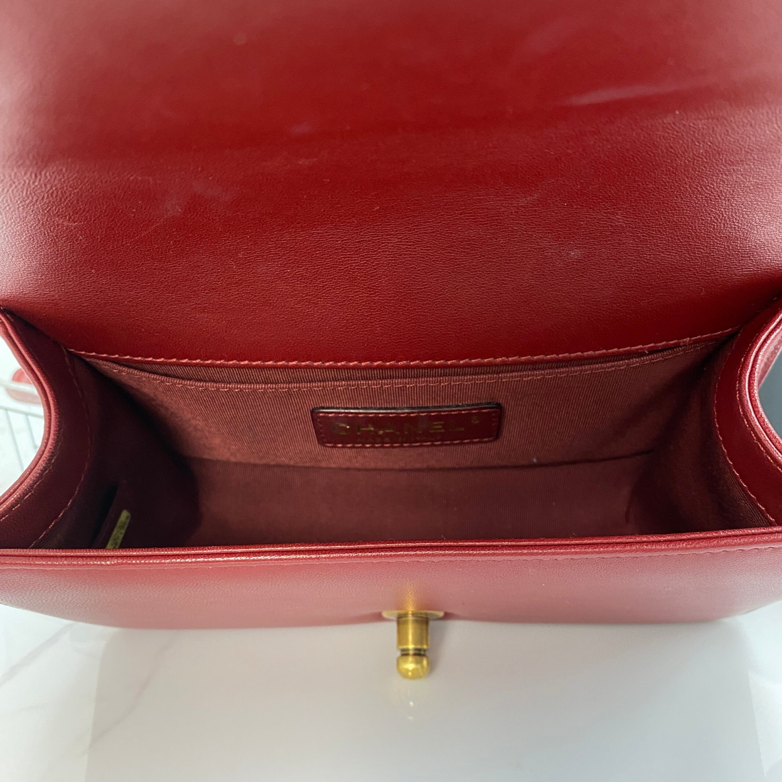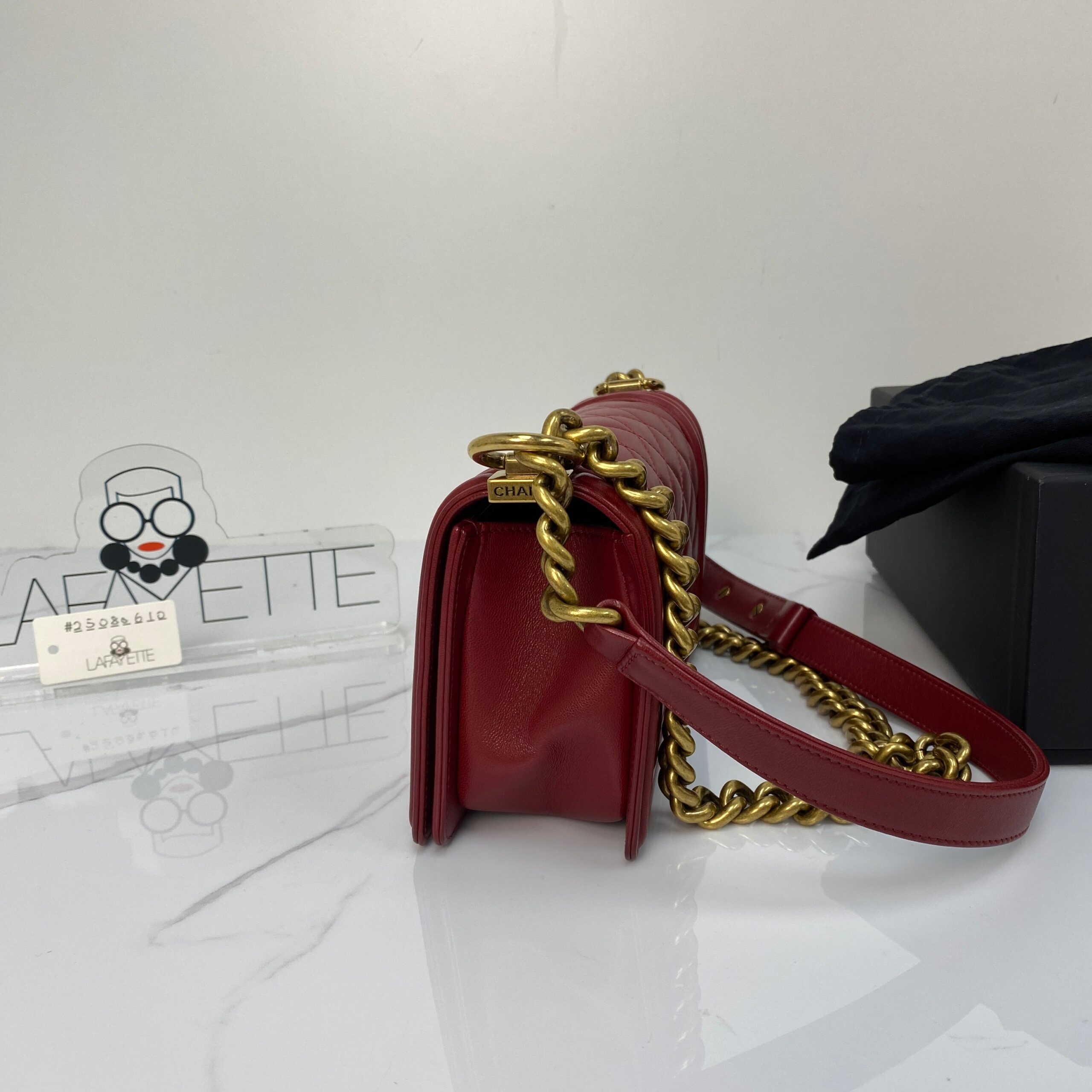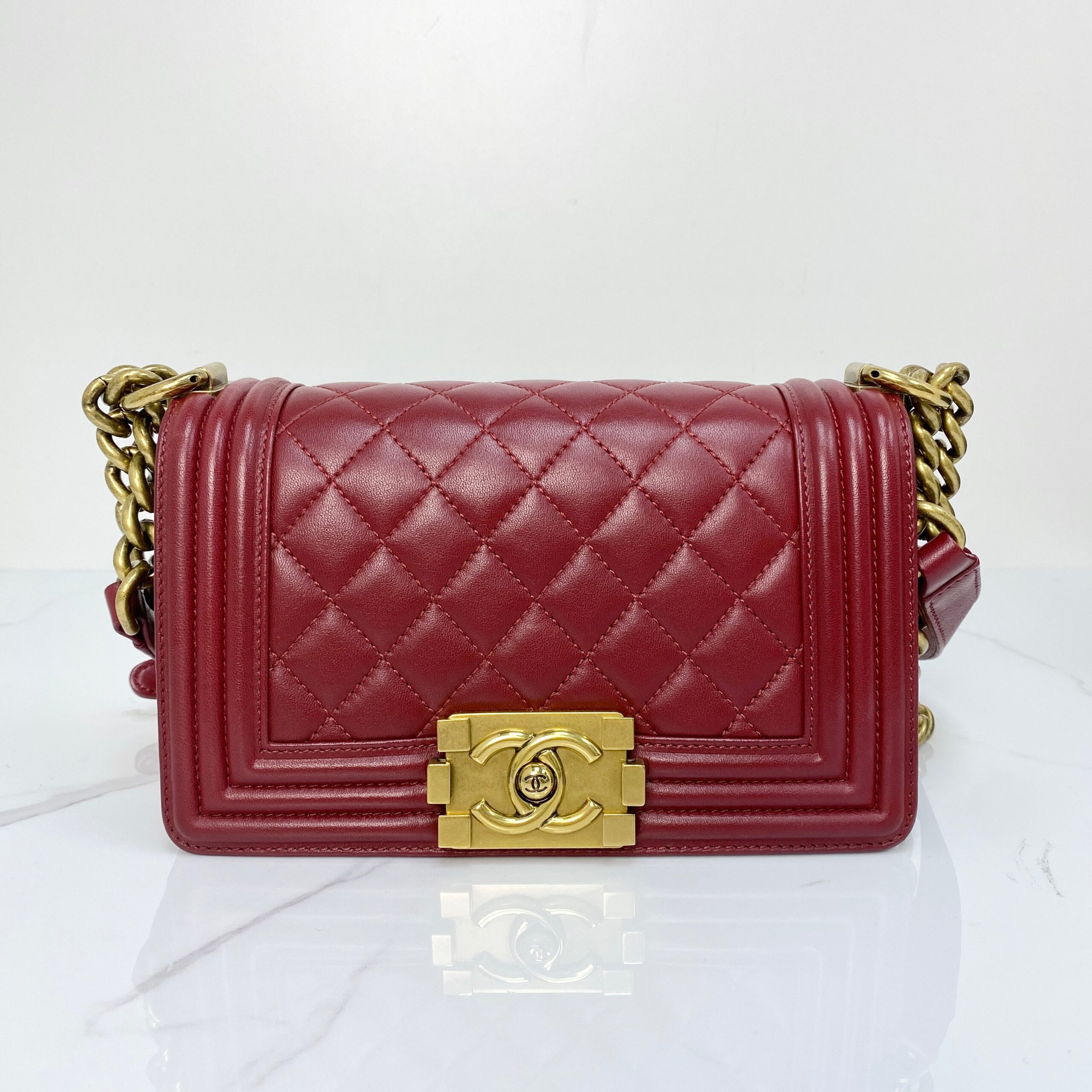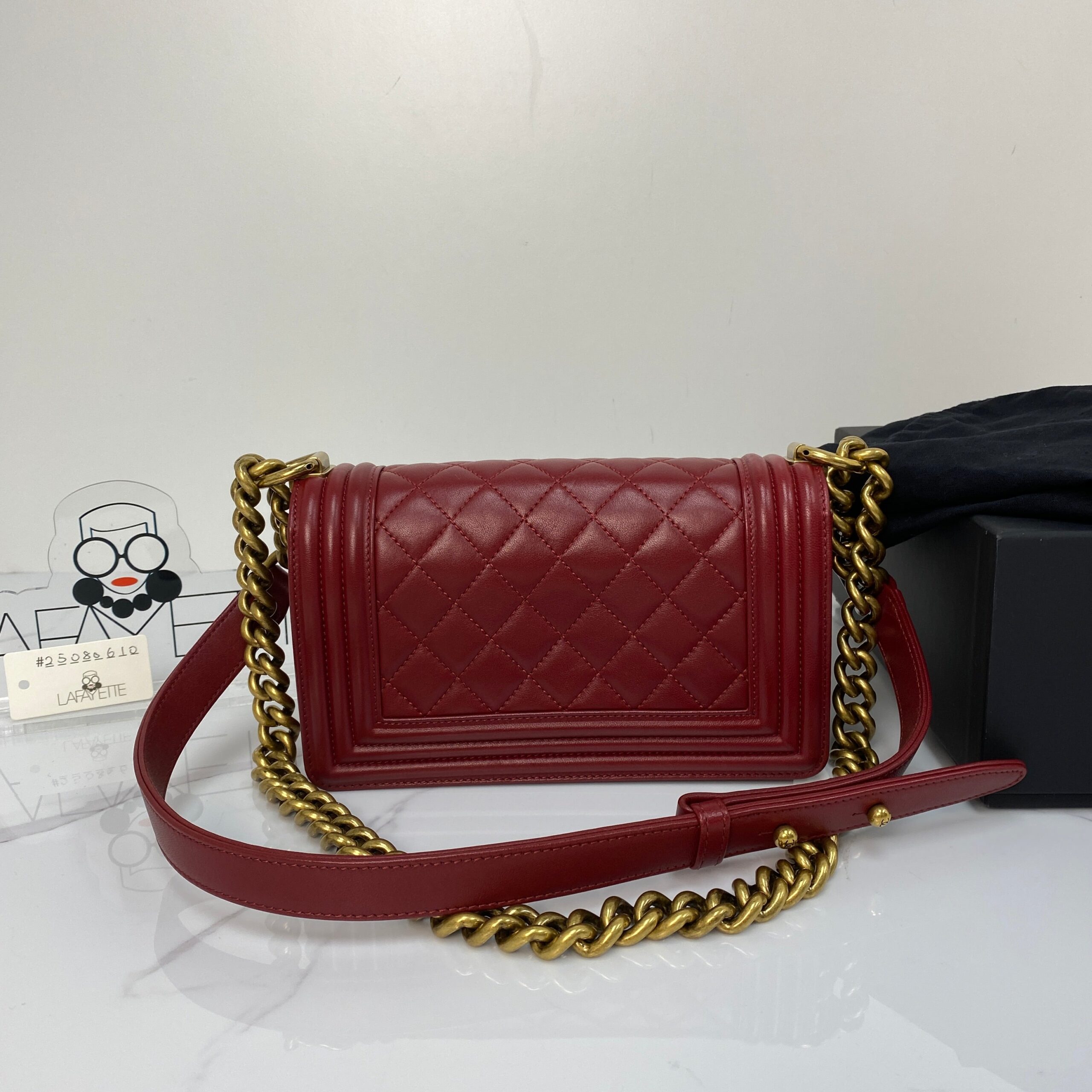 Turn every look into a statement with the Chanel Small Boy in bold red lambskin. Perfect with monochrome outfits or pattern play, it’s your go-to piece for adding instant luxury edge.