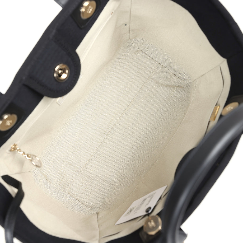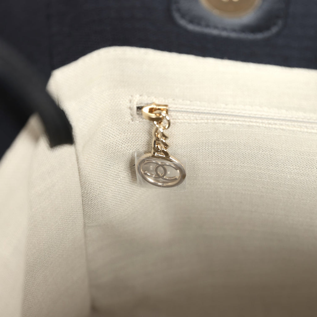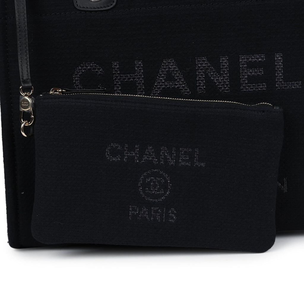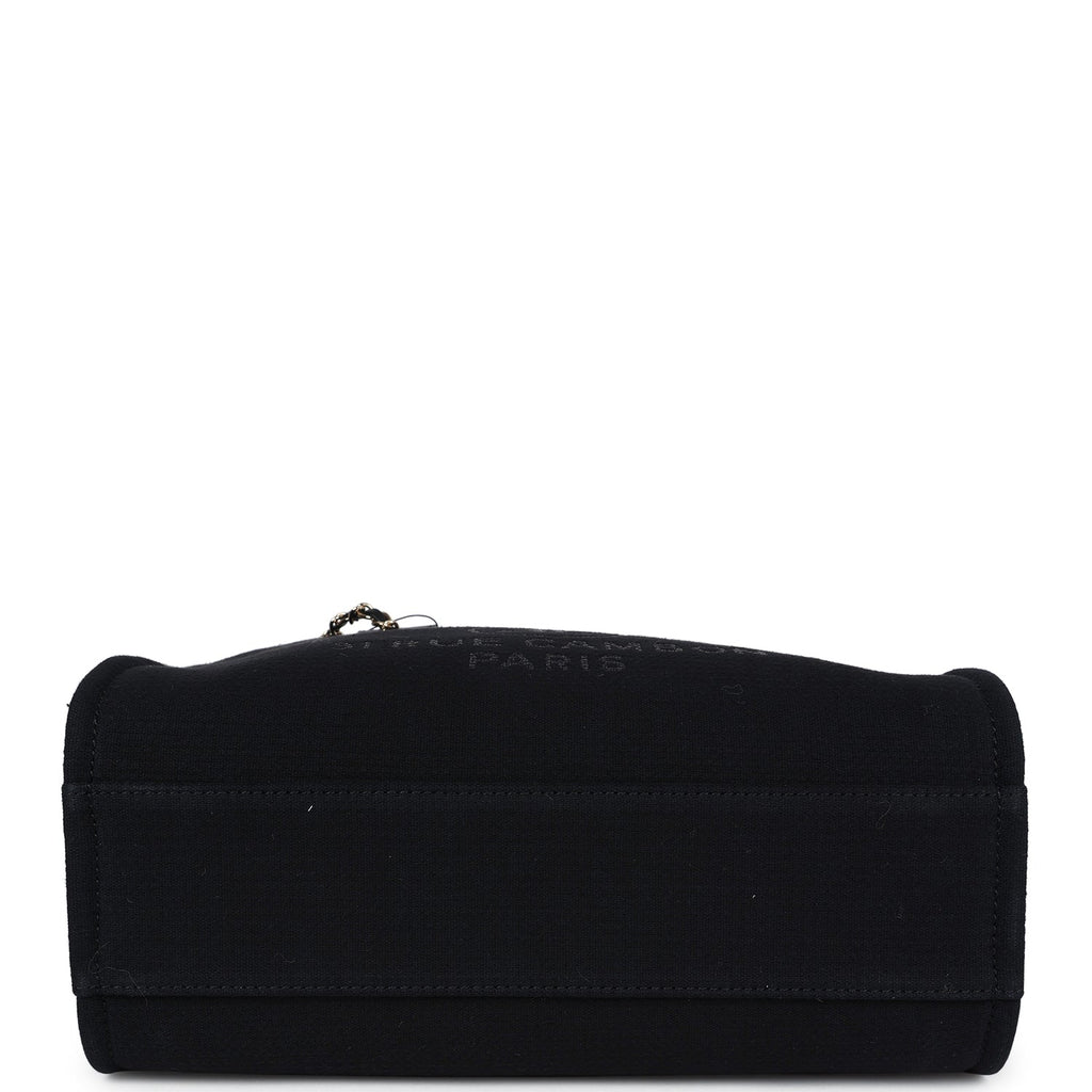 Chanel Small Deauville Shopping Tote Black Canvas Light Gold Hardware