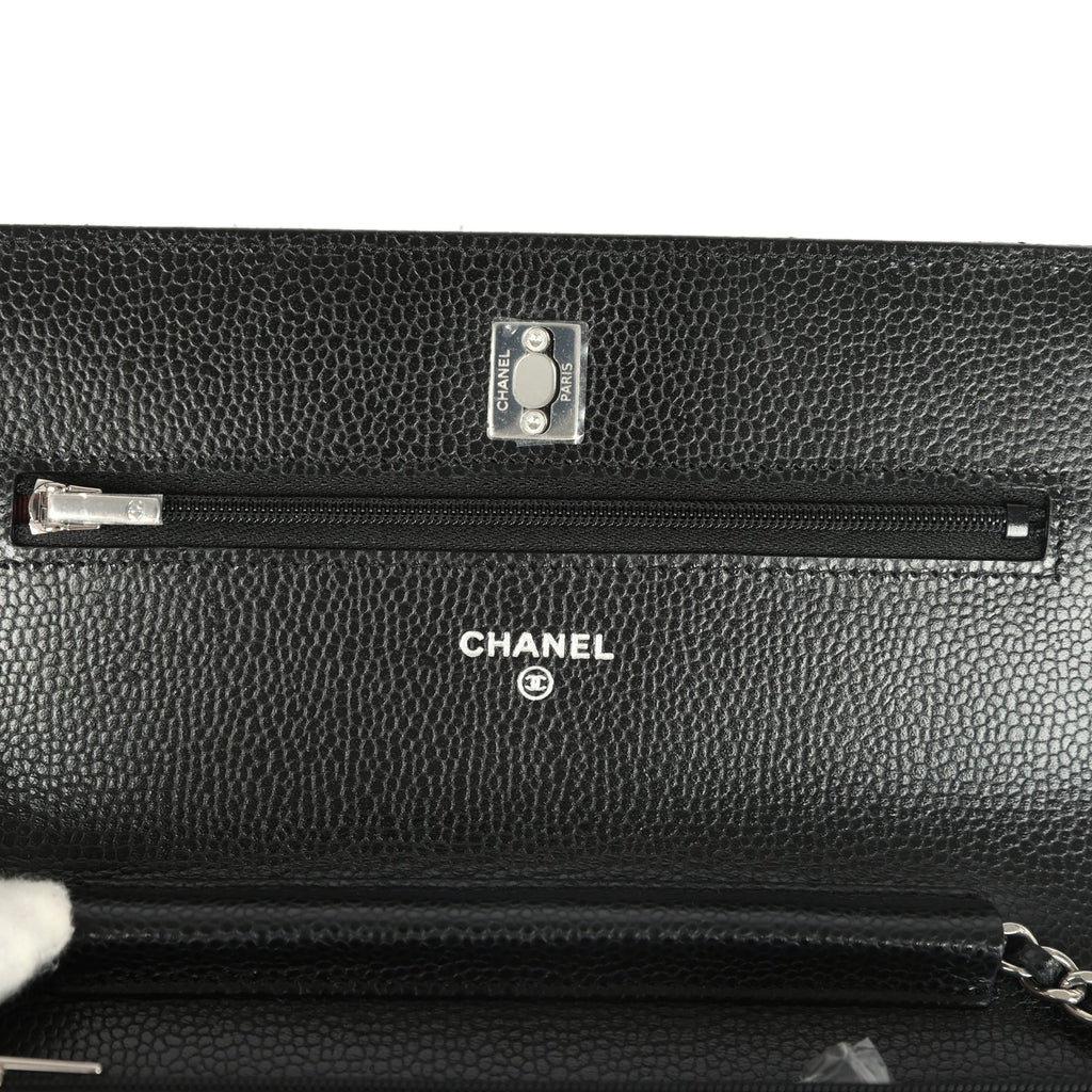 Chanel Wallet On Chain WOC Black Caviar Silver Hardware Shop for an authentic Chanel Wallet on Chain in black caviar leather with silver tone hardware in new and never worn condition at Madison Avenue Couture.