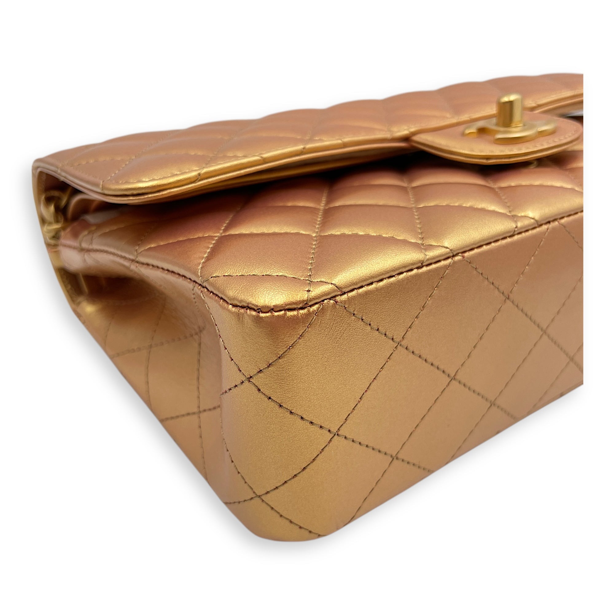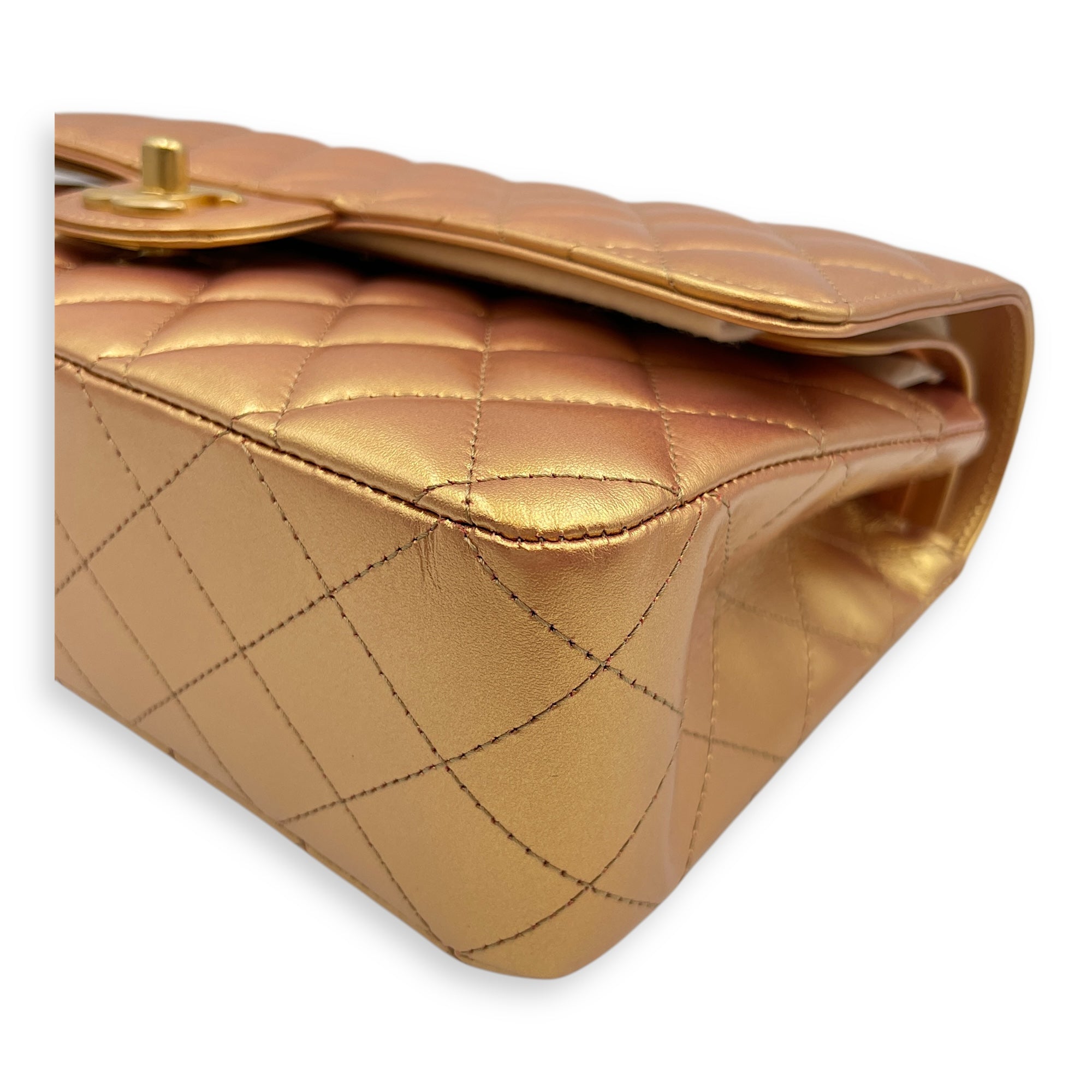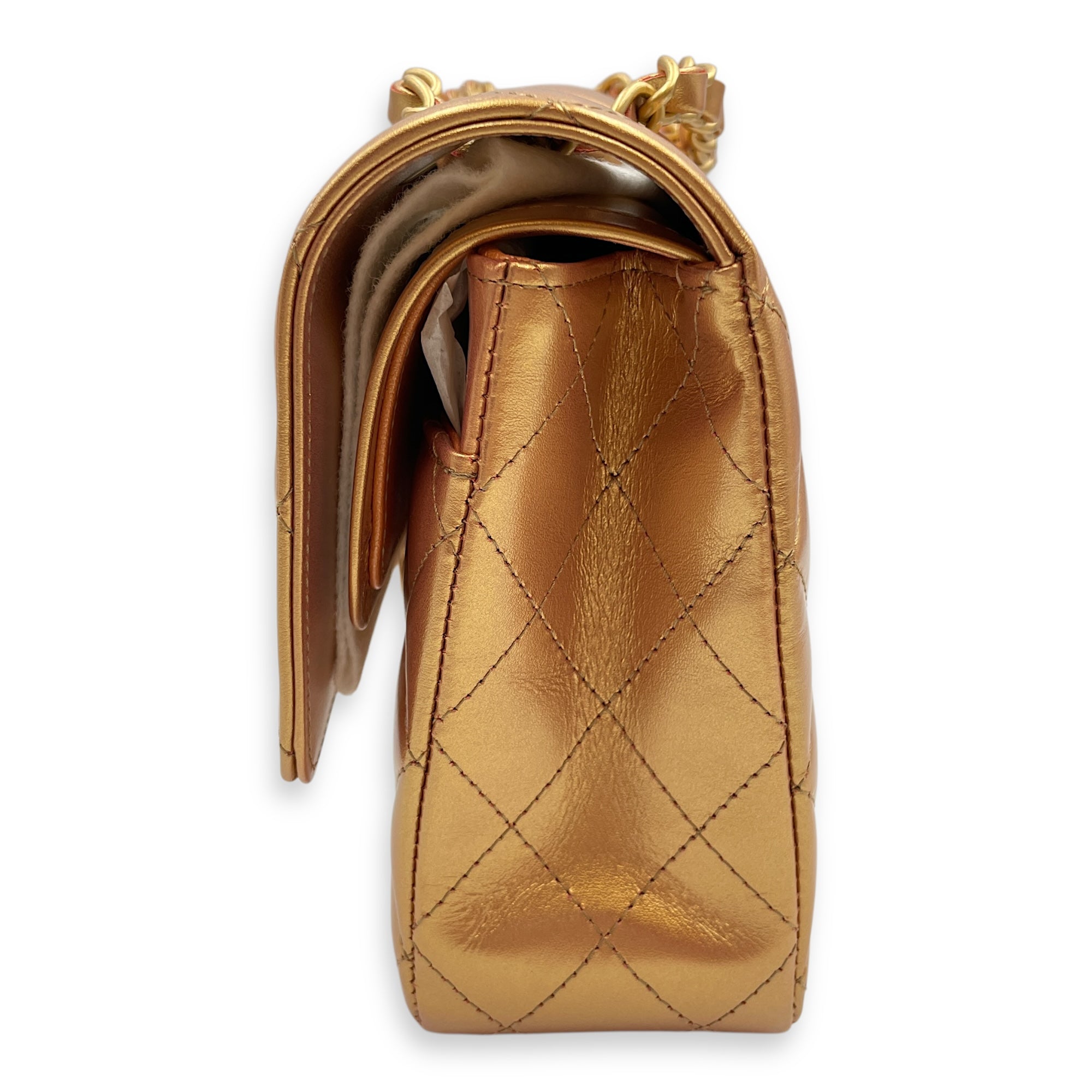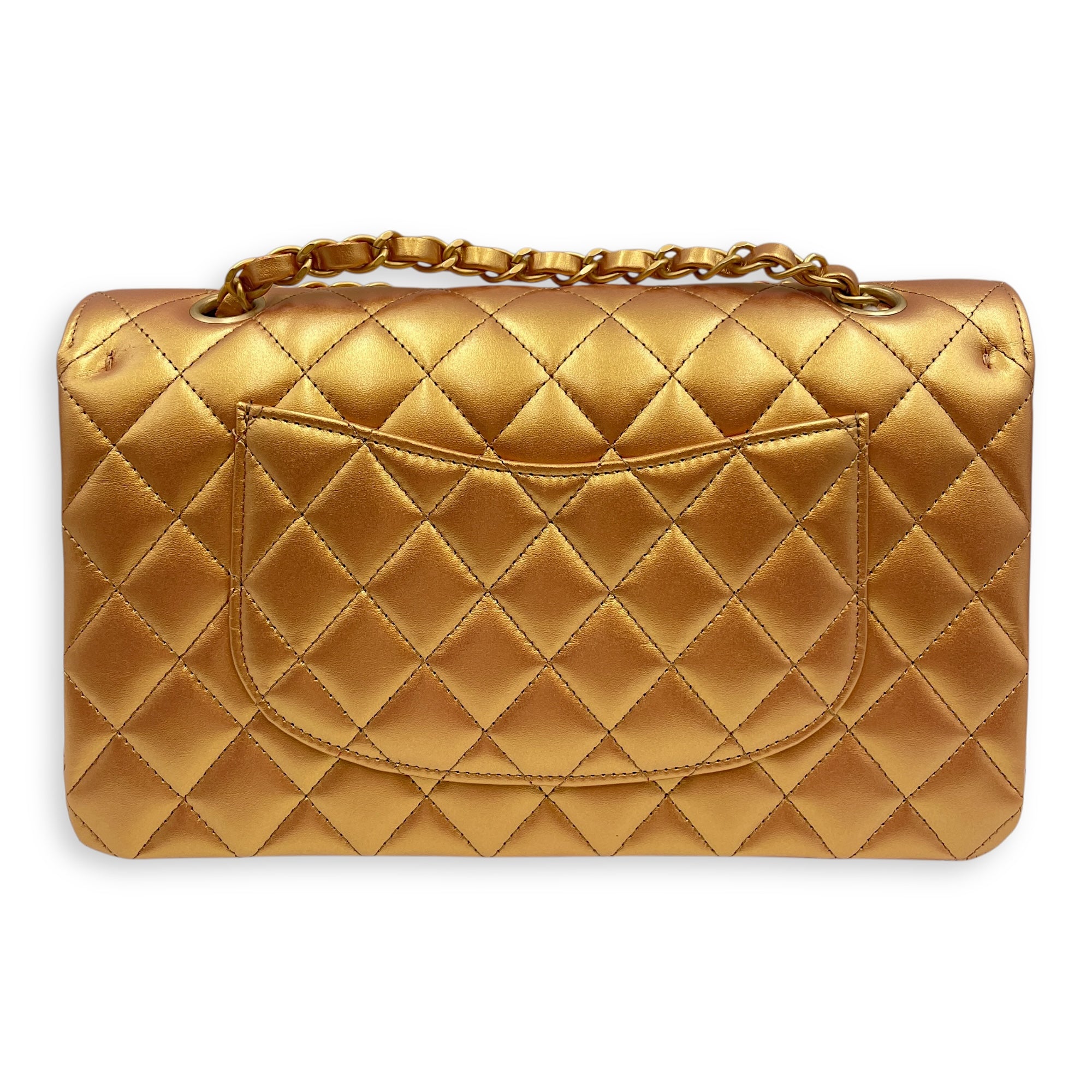 Classic (DF) Medium Metallic Gold Shoulder Bag in Lambskin, Gold hardware