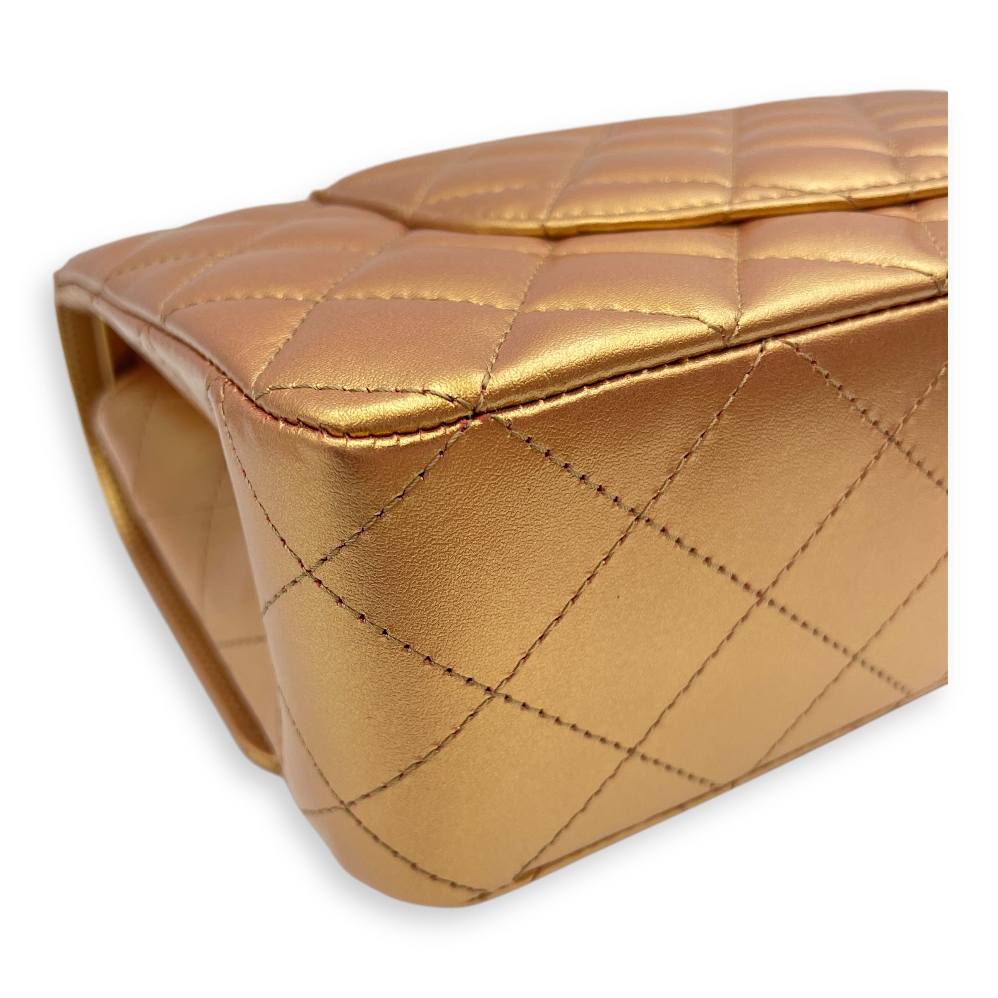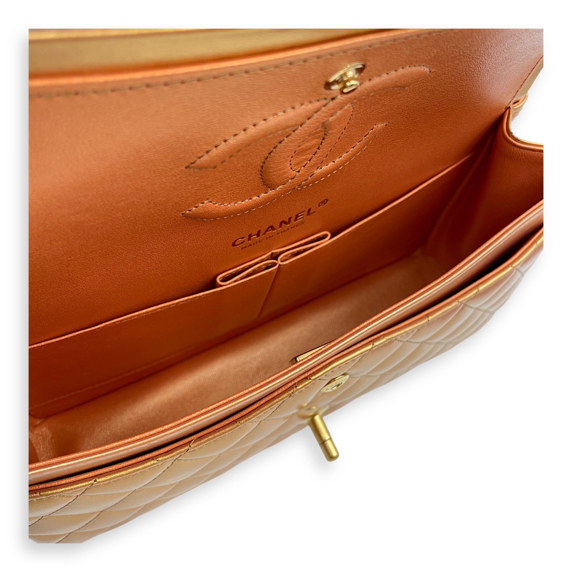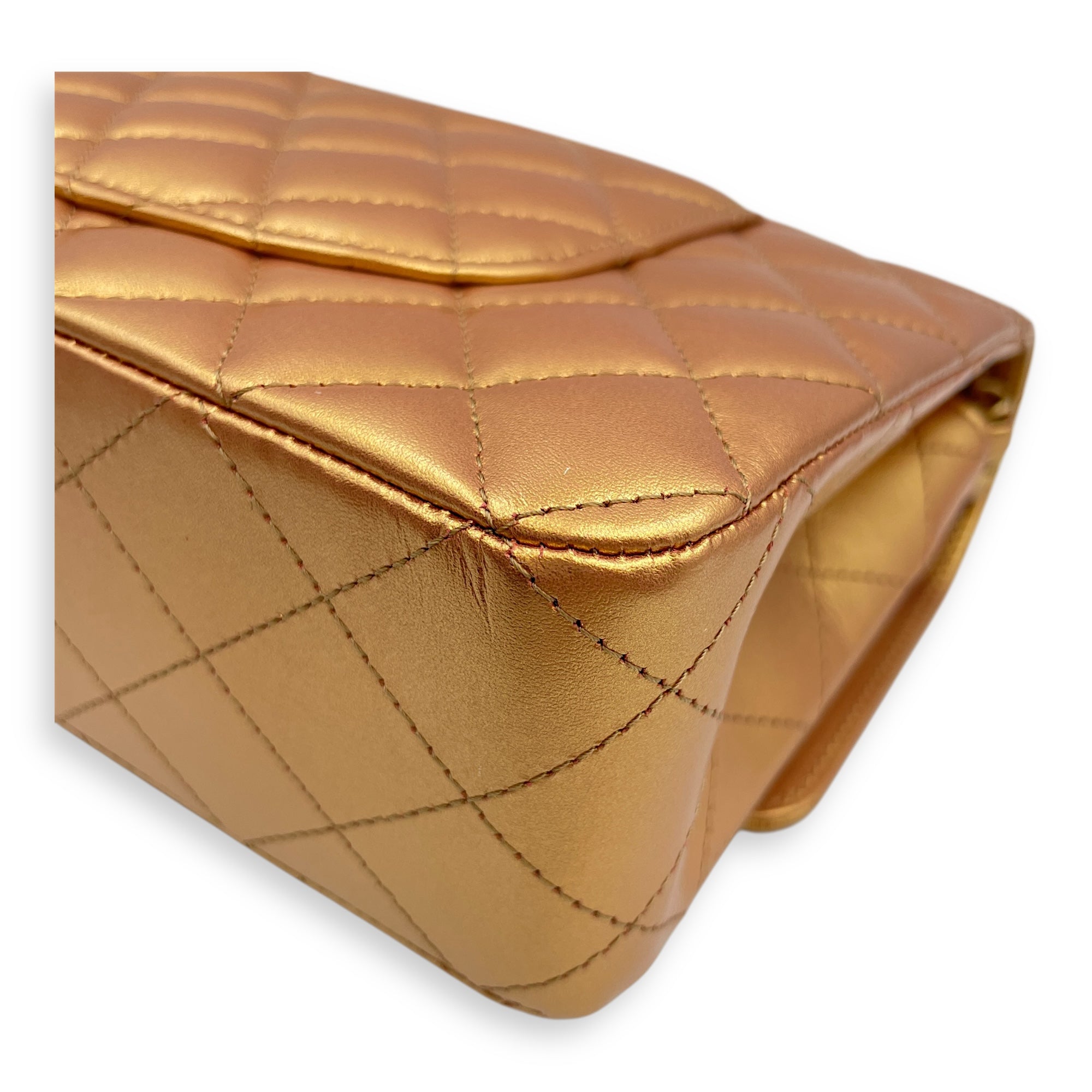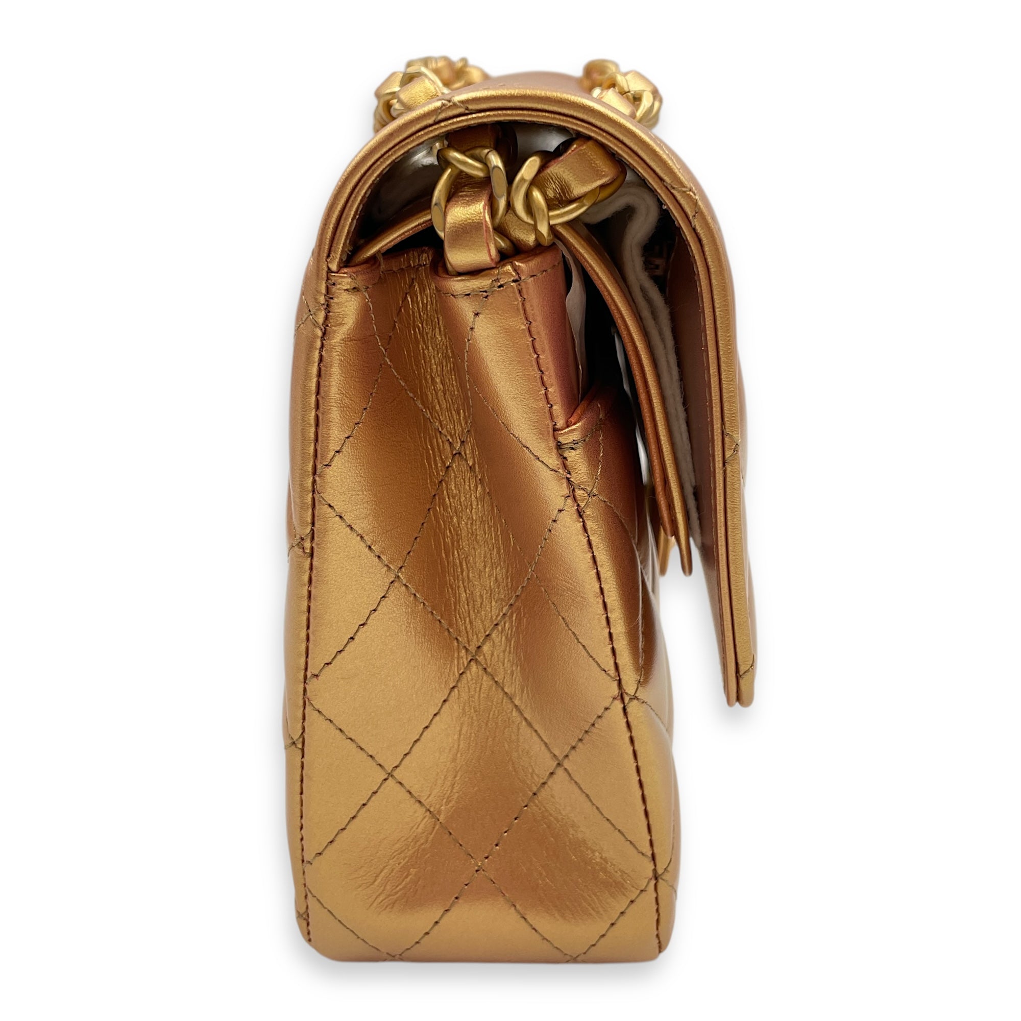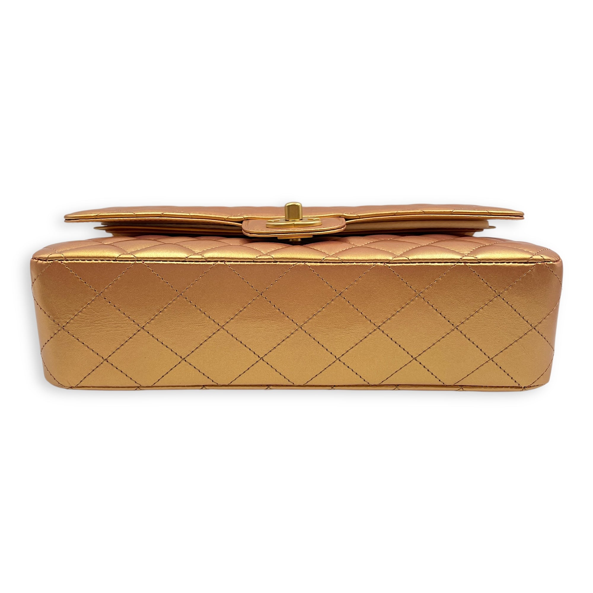 Classic (DF) Medium Metallic Gold Shoulder Bag in Lambskin, Gold hardware