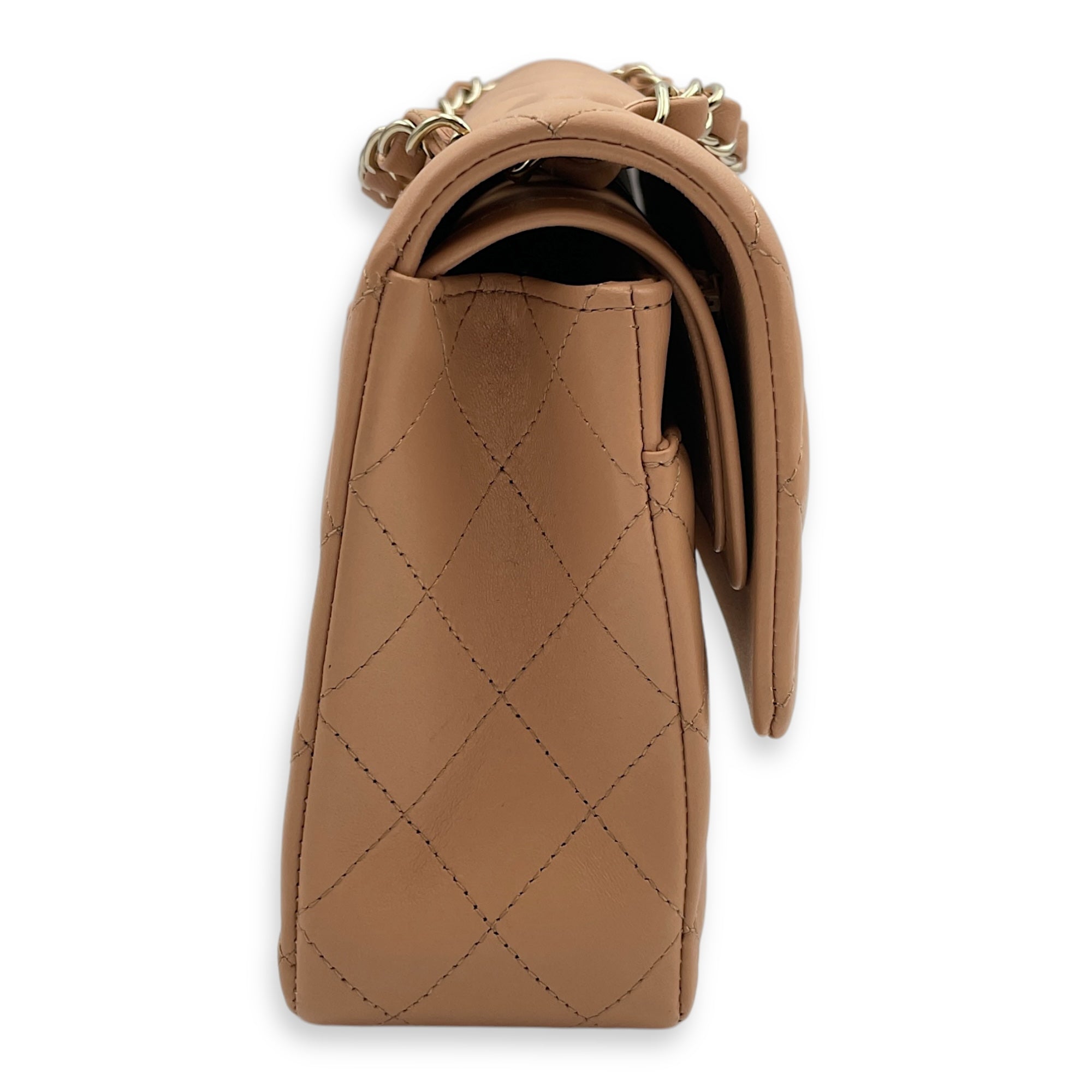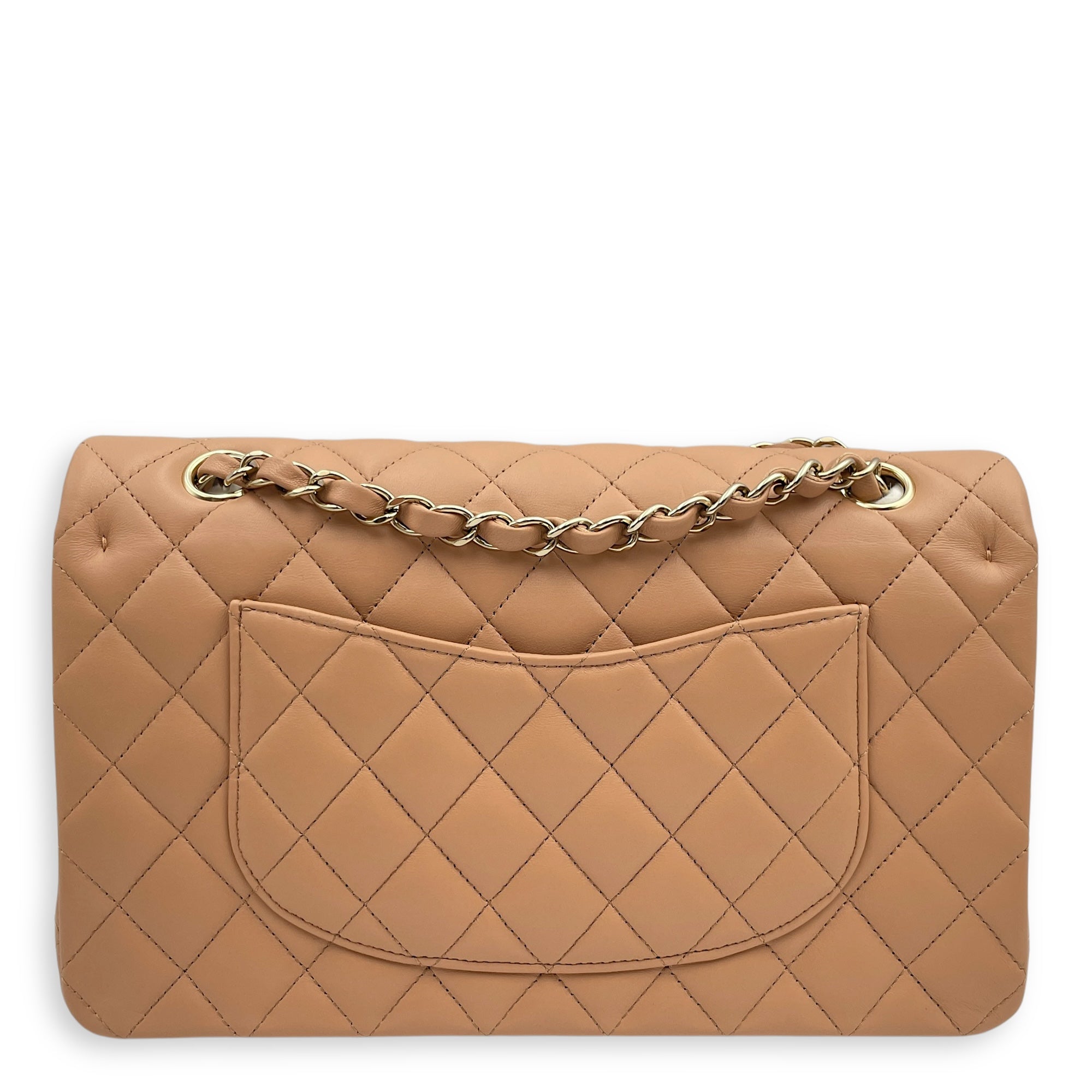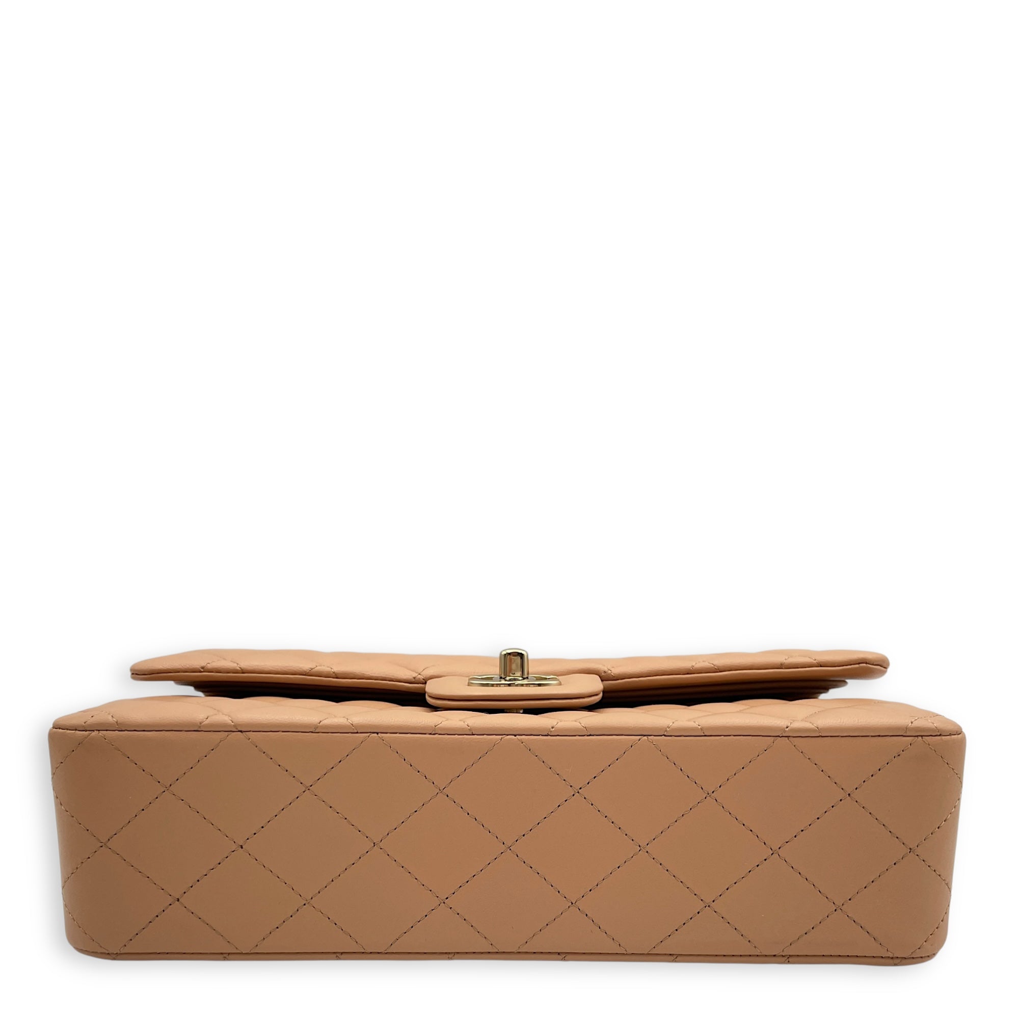 Classic Double Flap Medium Beige Shoulder Bag in Lambskin, Gold hardware